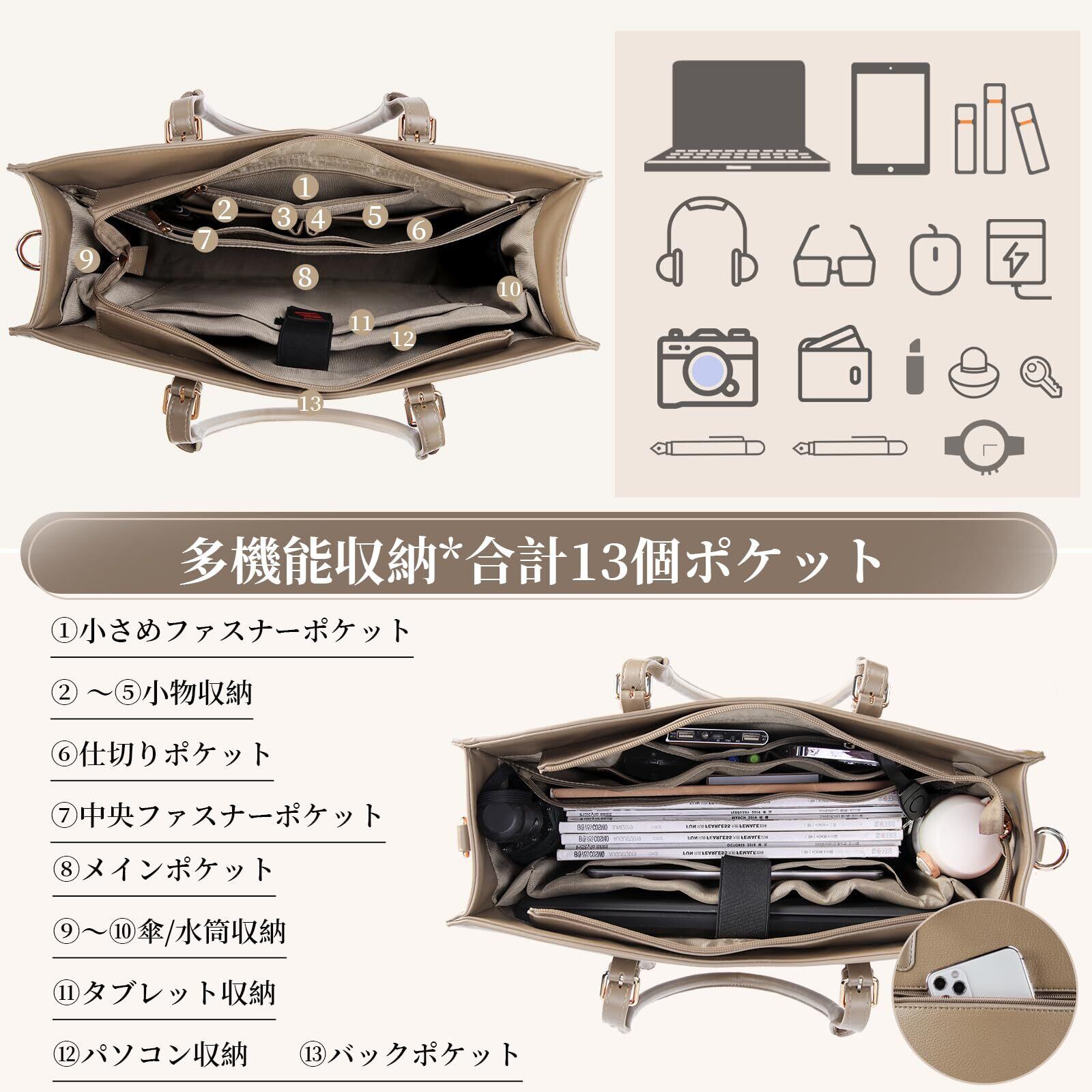 [IGOLUMON] トートバッグ レディース ビジネスバッグ 大容量 A4対応 15.6インチ ハンドバッグ 撥水加工 自立機能 就活 通勤 就職 ブラック グリーン ブラウン カーキ