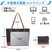 大容量&きちんと整理:ポケットが13個あるため、様々な物の収納に便利です。メインポッケトの内側には中身の整頓に便利なメイン収納部×1、3つファスナーポッケト、4つオープン小物入れポケット、2つペンスリップと15.6インチPC柔軟な収納部付きです。PC、雑誌、iPad、財布、傘、手帳、鍵などを収納可能です。背面にファスナーポケットを配置して、スマートや貴重品の収納に最適です。さらに、2点セットのハンドバッグので色々な場合に合わせ使用できます。ハンド、手提げ、斜め掛け、ショルダー、場合によって使用できます。