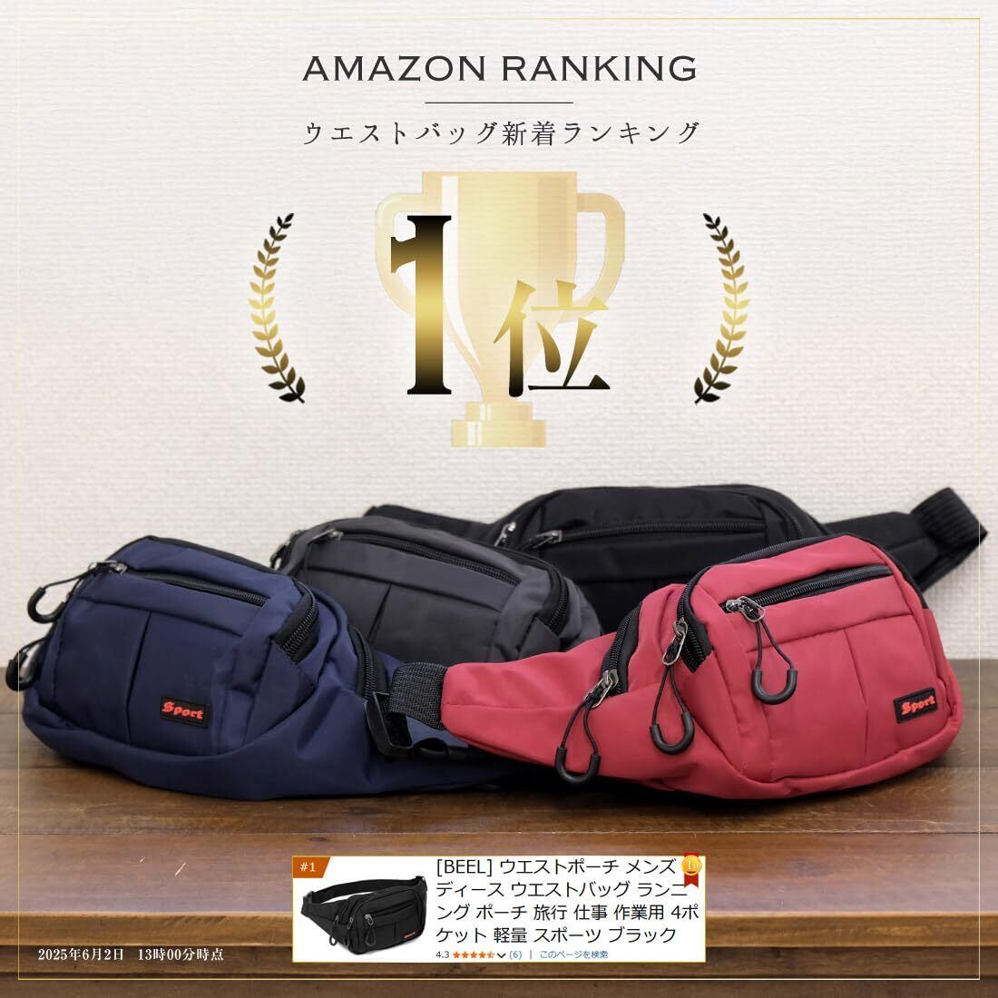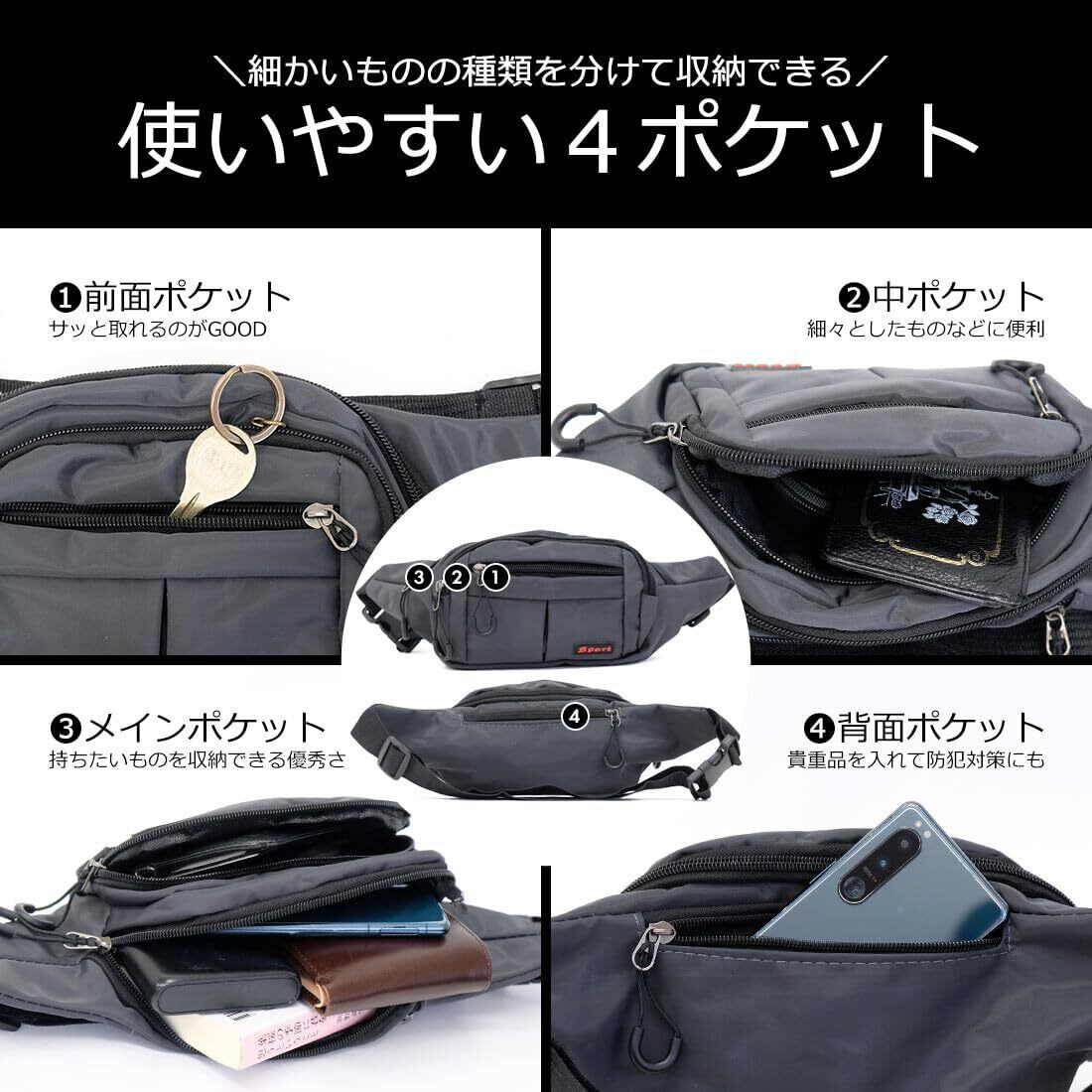 [BEEL] ウエストポーチ メンズ レディース ウエストバッグ ランニング ポーチ 旅行 仕事 作業用 4ポケット 軽量 スポーツ ブラック