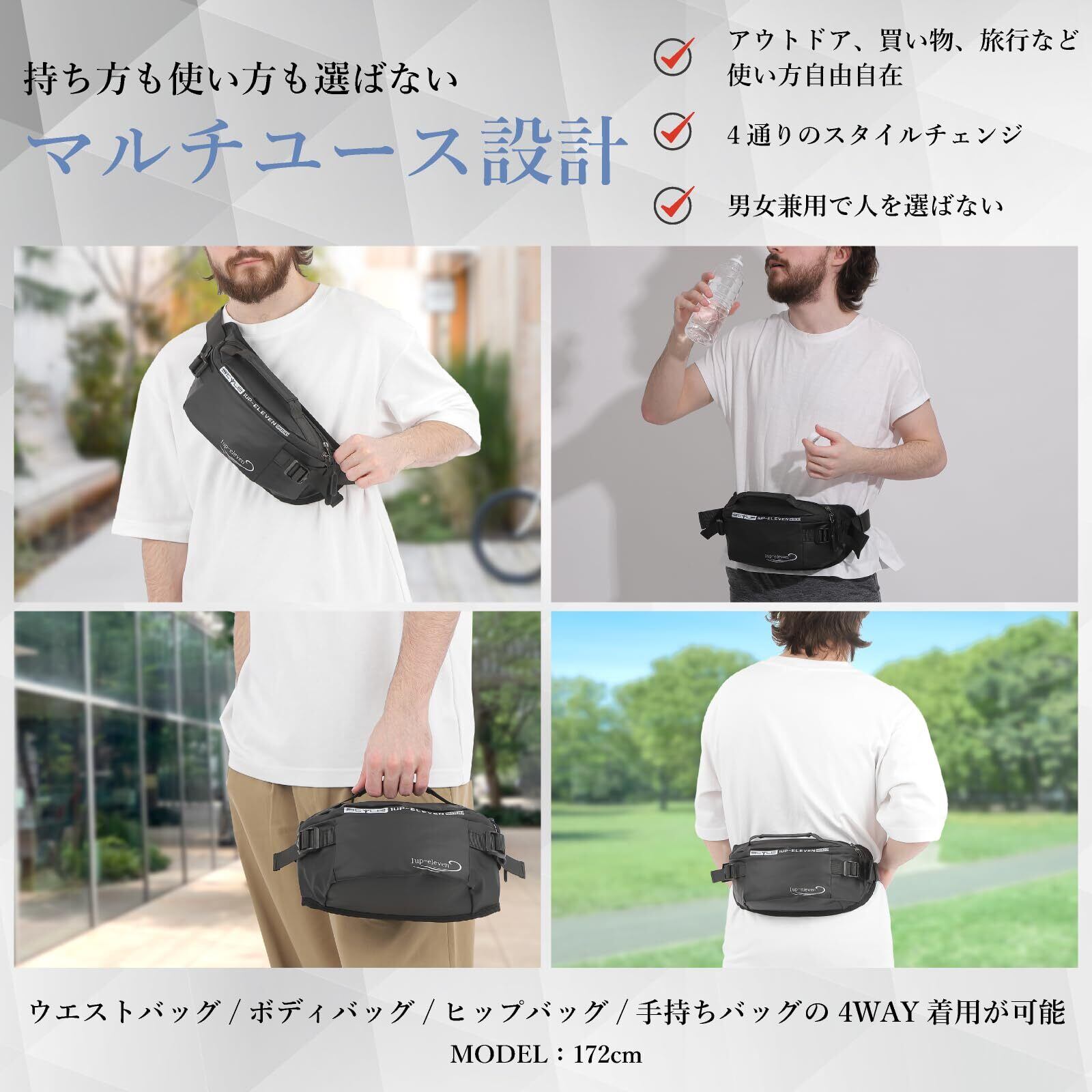 [1up-eleven] ウエストバッグ 【日本ブランド】 防水 バッグ ウエストポーチ 大容量 ポーチ ボディバッグ ショルダーバッグ ヒップバッグ (ブラック)
