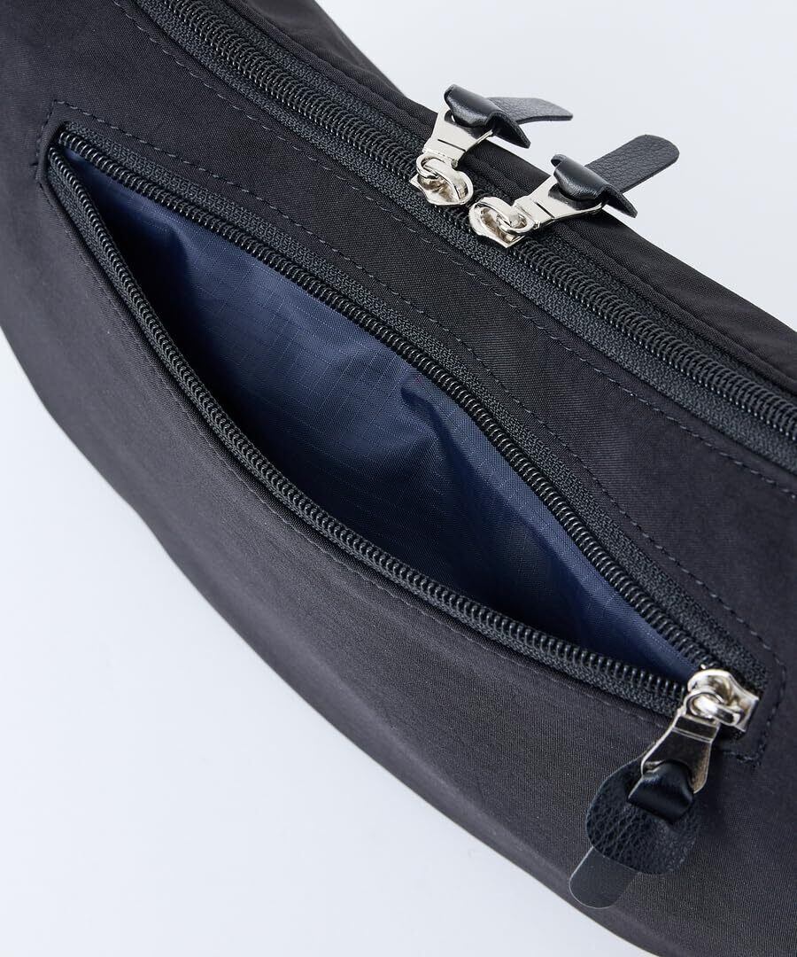 洗いシワのようなヴィンテージ感のある風合いが特徴の生地を使用。風合いを活かすためバッグのデザインは極力シンプルに。人気のバナナ型ショルダーは開口部が広く使い勝手◎外側背面にはファスナーポケットが付いていて、スマホなどをさっと出し入れできます。
