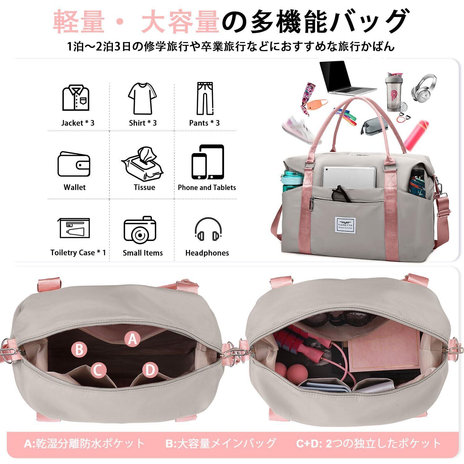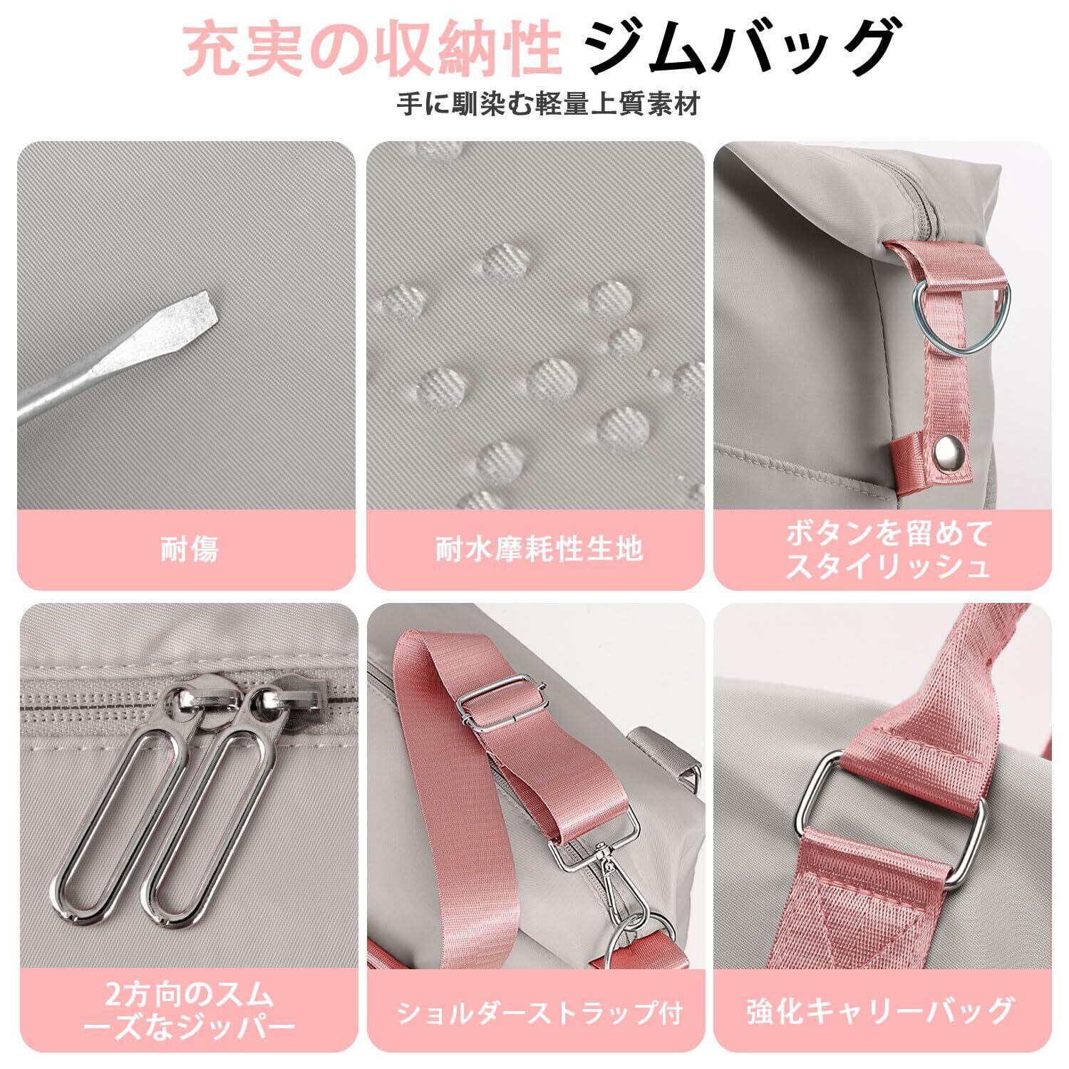 【GSG】トラベルバッグ ボストンバッグ 旅行バッグ レディース メンズ 1泊 一泊二日 大容量 2サイズ スポーツ 旅行用ダッフルバッグ スーツケース固定 撥水加工 斜め掛け キャリーオンバッグ 乾湿分離 3WAY 修学旅行 出張 旅行カバン グレー+ピンク22092