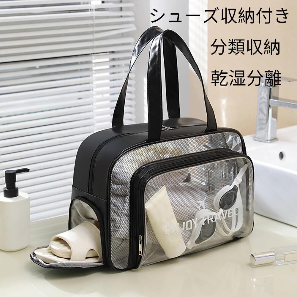 Elivo プールバッグ シューズコンパートメント付き 仕分け収納 & 乾湿分離 大容量 水着入れるバック スパバッグ 温泉バッグ 透明バッグ 透明収納バック