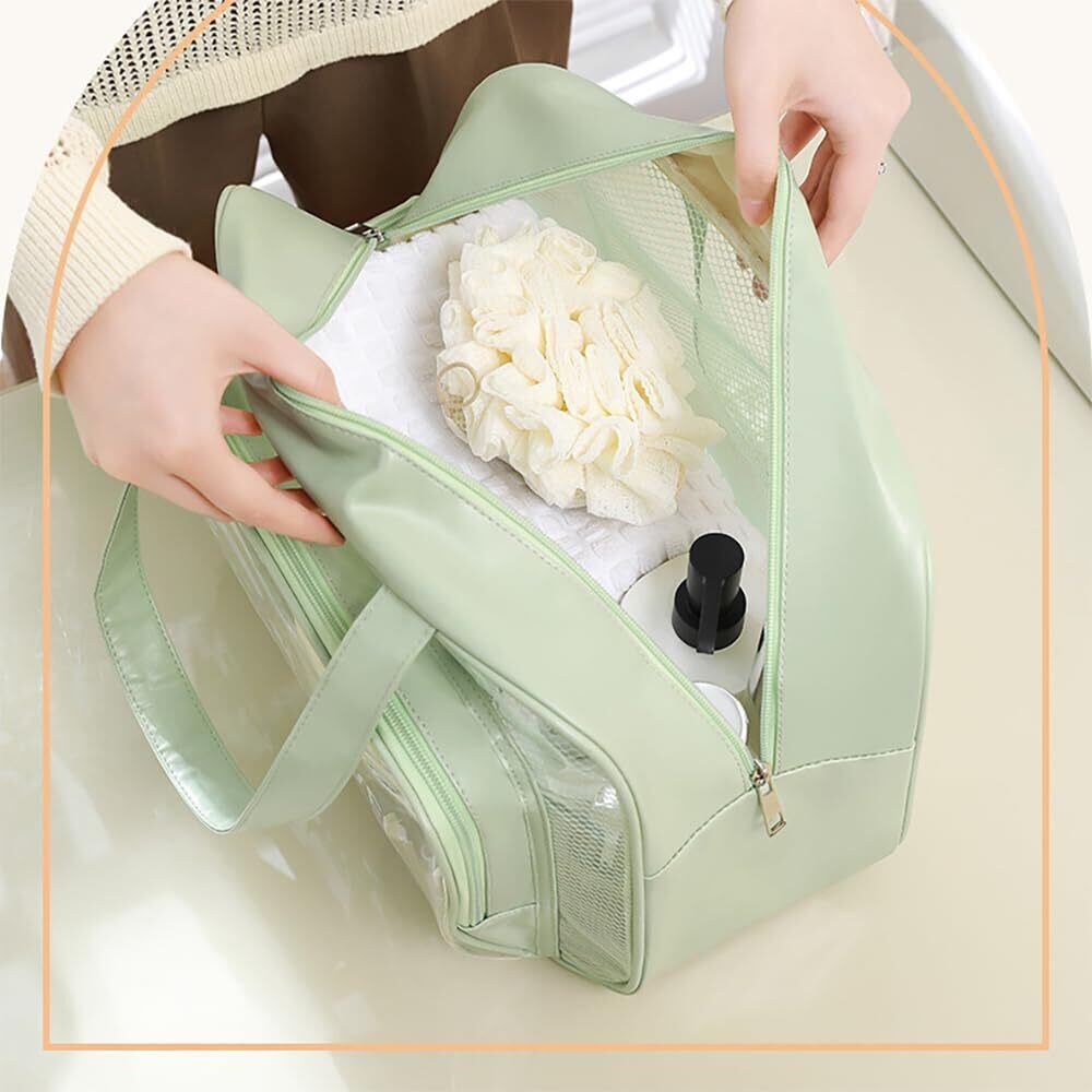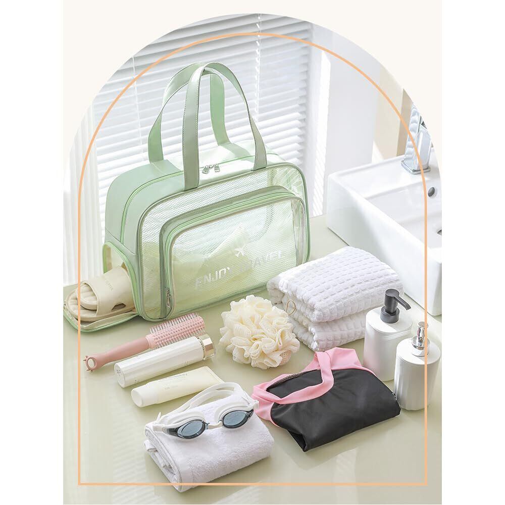 防水素材で安心の使用感:PUと透明PVC素材を使用し、防水性に優れています。濡れた水着やタオルも安心して収納でき、雨の日やプールサイドでも安心して使用できます。