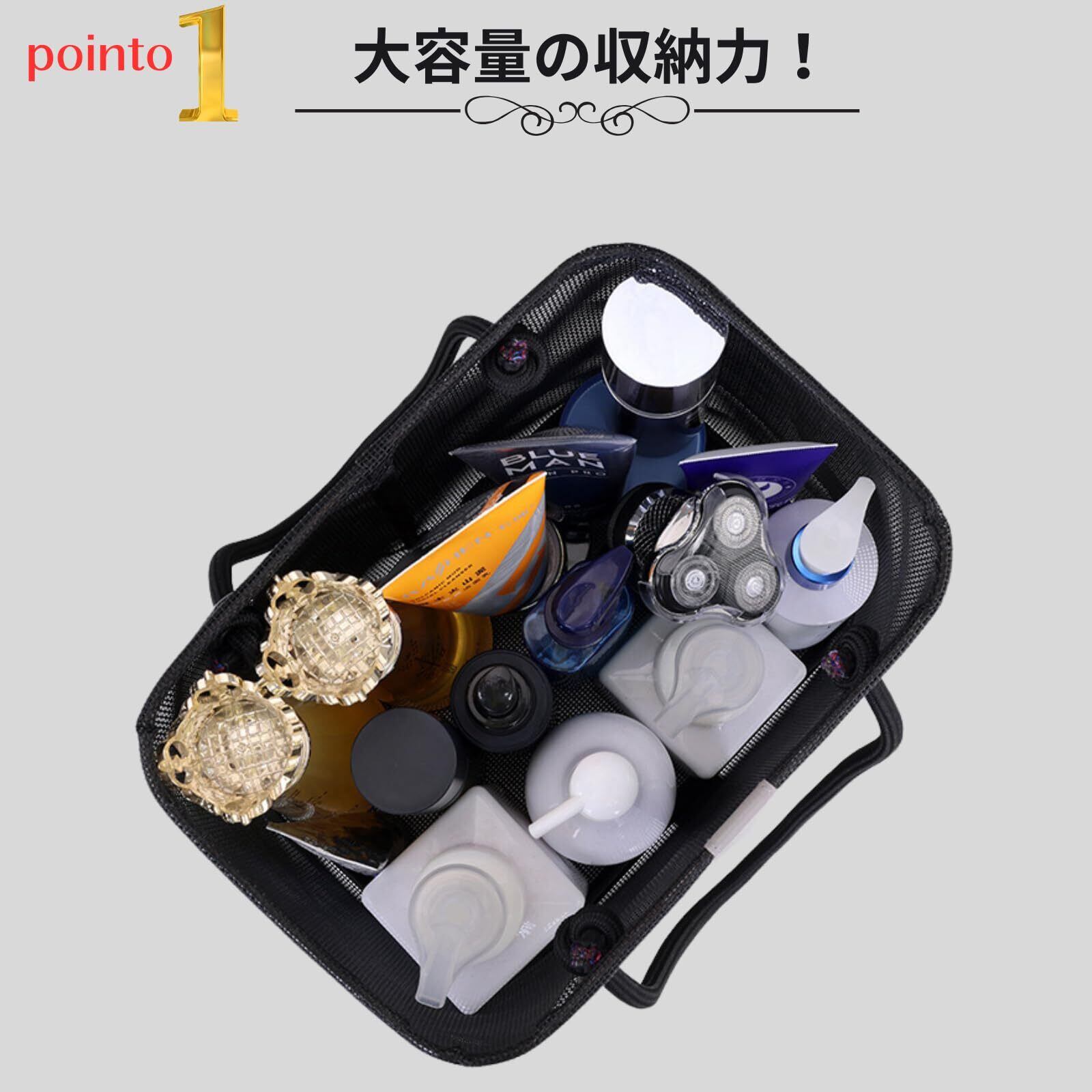 ・大容量なバッグなのでシャンプーセットやスキンケア用品などもまとめて持ち運べるので収納力も抜群です。