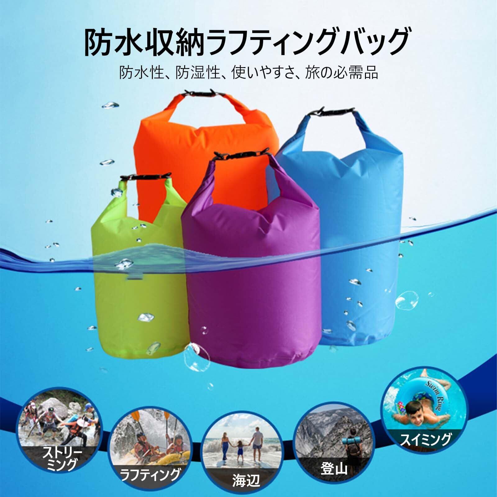 [高品質の防水バッグ] この柔軟な防水バッグとドライバッグは一年中使えるタフなバッグです。210Tポリエステルタフタ生地防水バッグ、PU5000mm、あなたのアイテムを継続的にきれいに保つことができます。 耐久性と防水性のために二重糸で再成型されたシールされた縫い目は、縫い目からの水の浸透を完全に排除します。この製品は、頑丈な防水バッグが必要な方に最適です。 雨、雪、ほこり、砂からあなたの持ち物を守り、ドライに保ちます。 鮮やかなマルチカラー、2L/5L/20L/40L/10L/20L/20L/40L 10L/20L/40L/70Lマルチサイズ容量、ちょうど人々のさまざまなニーズを満たすために。