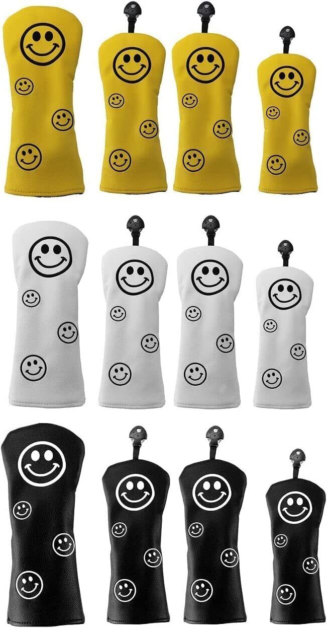 かわいいスマイルデザイン、高品質のPUレザーで、しっかりクラブヘッドを保護でき、防水タイプ、3色 ドライバー用(DR用):460cc 440cc対応 フェアウェイウッド用(FW用):3、4、5、7、X番の変換ダグ付き ユーティリティ用(UT用):2、3、4、5、6、UT番の変換ダグ付き 素材:高級PUレザー 裏生地:アクリル繊維 ※ご注意:カバー4点セットと単品 両方販売しております。ご確認いただき、間違いないように、ご購入ください。 ※カバー4点セットはDR用1点、FW用2点、UT用1点です。ご了承ください。