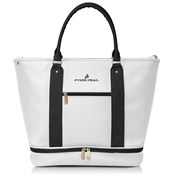 【販売累計100万個の実績】ゴルフシリーズ販売実績No.1のPYKES PEAK(パイクスピーク)から装いも新たにユニセックスデザインのお洒落なトートバッグが遂に登場。クラブハウスやラウンドで使う小道具類がまとめて入る30ℓの大容量。ゴルフバッグと一緒に駐車場からクラブハウスまで荷物の運搬が1度で済むように使い勝手を徹底追及しました。もちろんゴルフのドレスコードにマッチしたヨーロピアンデザインで、防水性や耐久性に優れたPVCレザーを使用するなどスポーツアイテムに必要な機能性も完備。あなたのゴルフライフをおしゃれにサポートします。