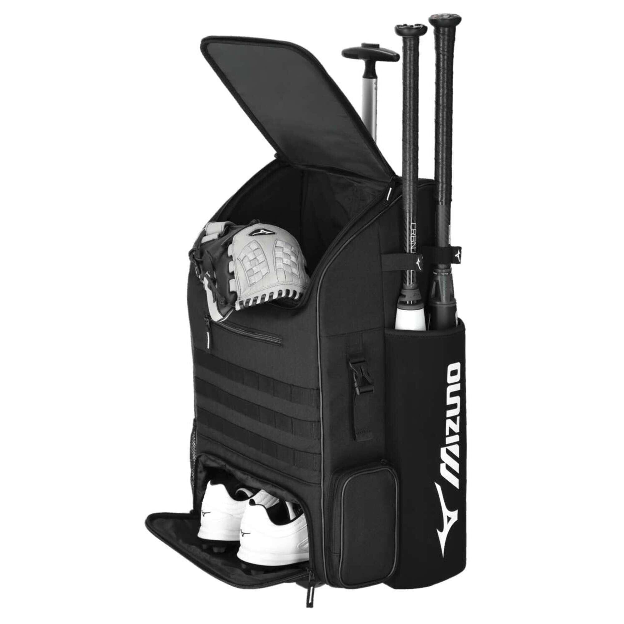 用途に合わせた使い方が可能なバッグ。サイドバックルには様々な野球道具を装着可能な仕様。