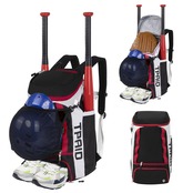 メインコンパートメントとフロントポケットには、ヘルメット、手袋、タオル、その他の必需品など、野球用品をすべて収納できます。ウォーターボトルを収納できるサイドポケットが2つあります。底部にある隔離靴コンパートメントは、靴を他のアイテムから分離します。