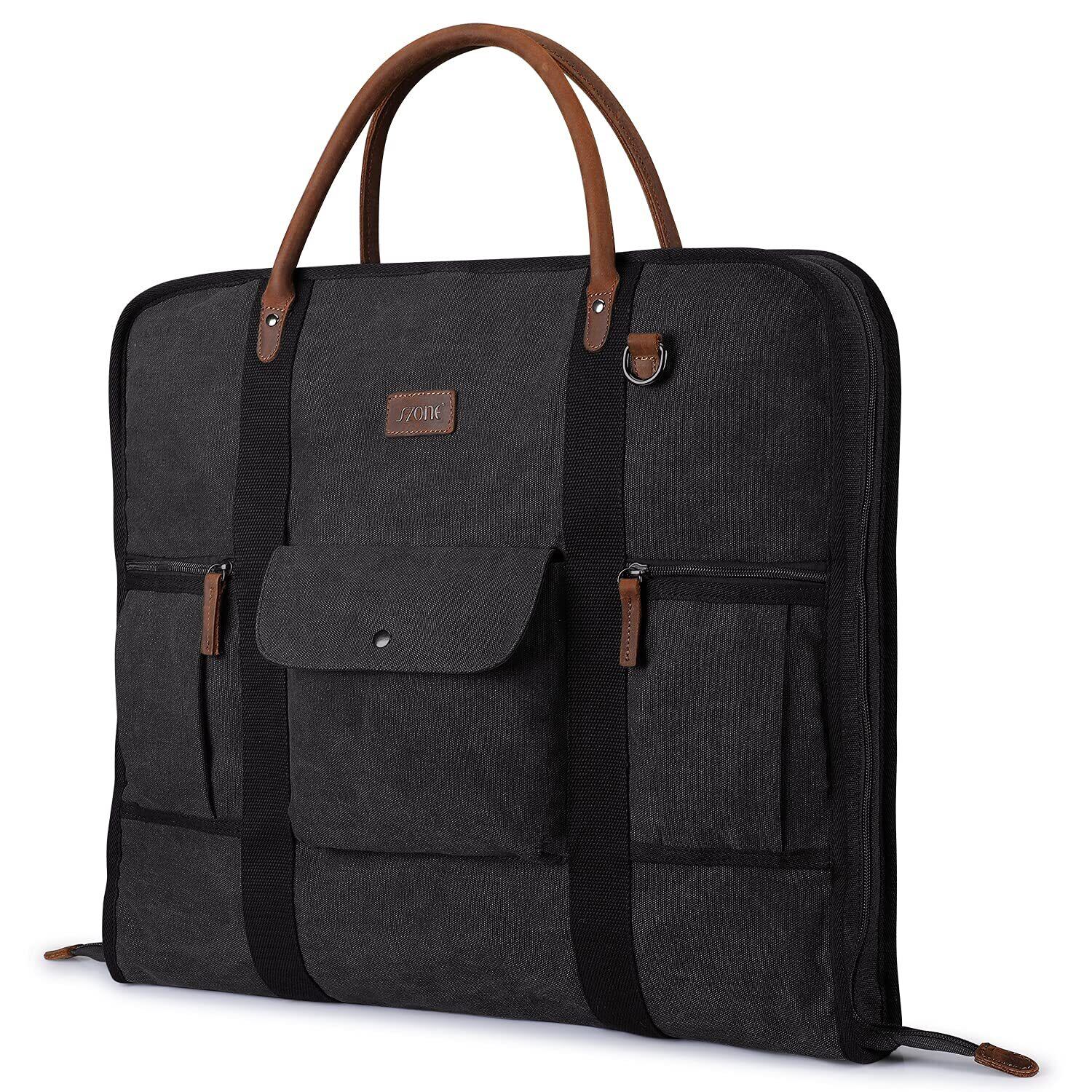 S-ZONE キャリーオン ガーメントバッグ ビジネス旅行用 キャンバスレザー メンズ スーツカバー