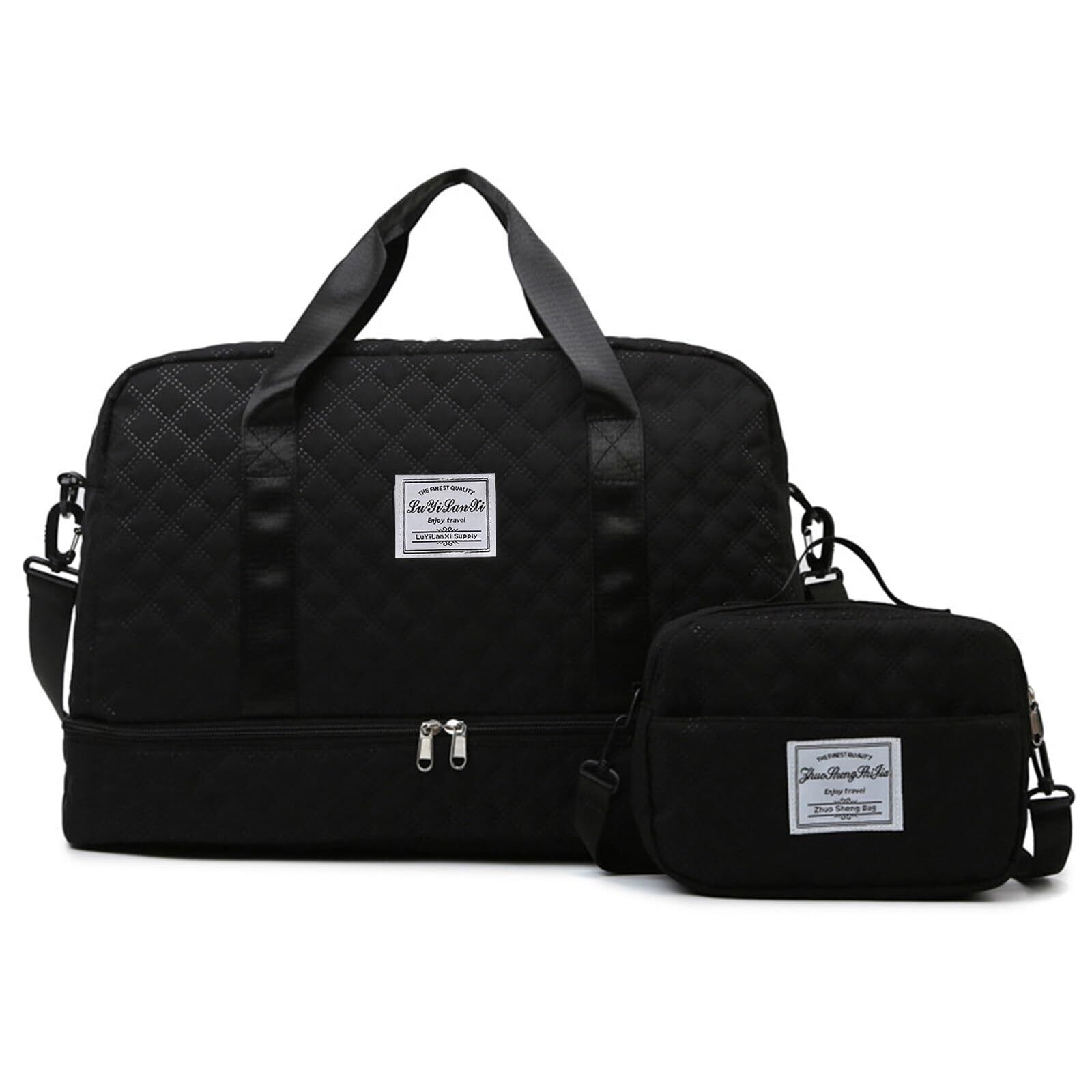 [ ユニベイズ ] ボストンバッグ 大容量 ユニセックス 旅行 軽量 キャリーオン 靴入れ 折り畳み トラベルバッグ 機内持ち込み (ブラック, メインバッグ+サブバッグ)