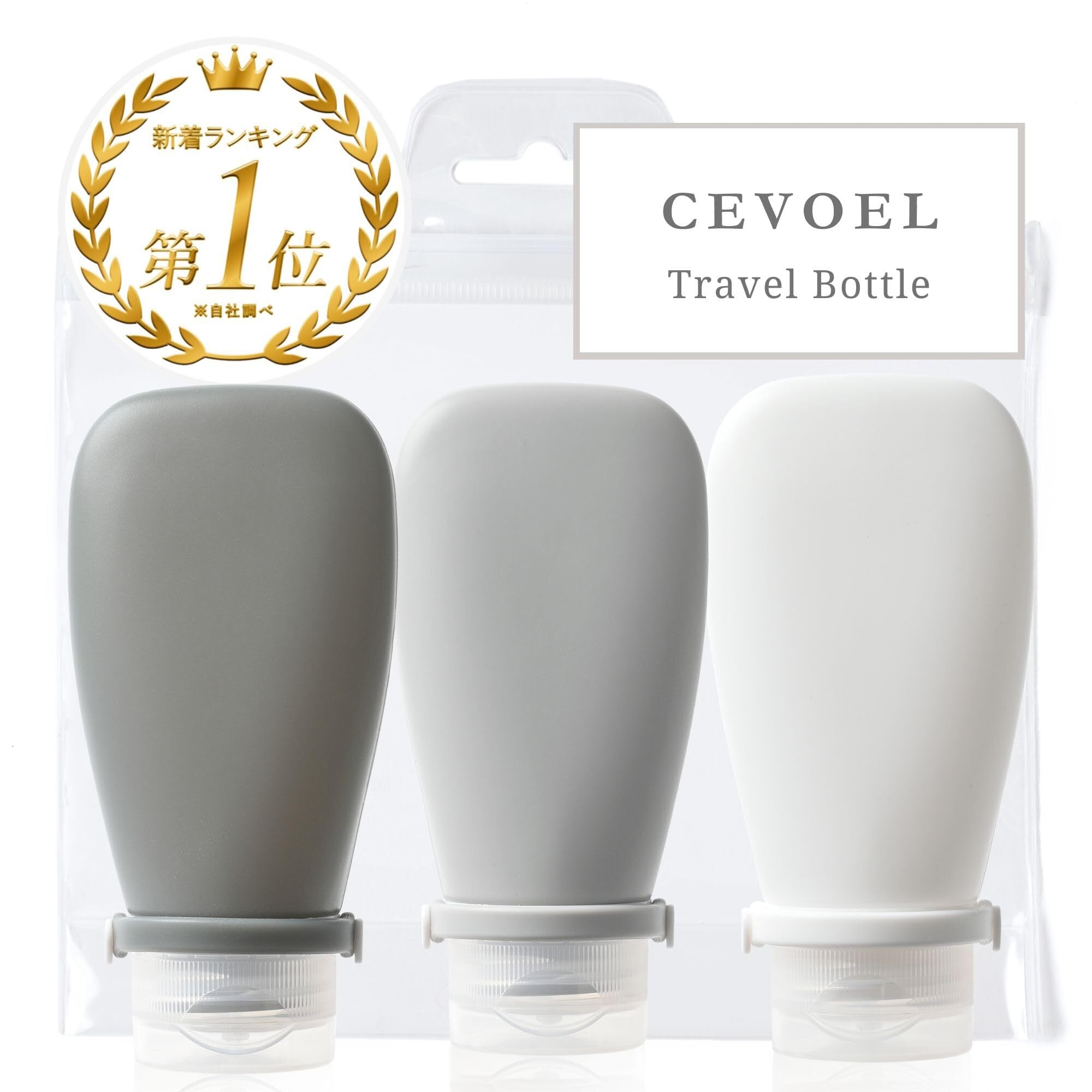 トラベルボトル 【漏れない特殊構造】 旅行用 シャンプーボトル トラベルセット CEVOEL シリコン製3個セット (クールグレー, 90ml)