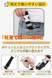【幅広い用途】このベルトは、トロリーケースに荷物を取り付けることができ、旅行やビジネスの際によりリラックスした時間をお過ごしいただけます。ハンドバッグ、荷物、ブリーフケース、カートなど、さまざまなバッグに対応しており、出張や旅行、季節の変わり目に重宝すること間違いありません。また、このベルトは両手を解放することができますので、ジャケットやマフラーなどを簡単にバッグやスーツケースに取り付けて持ち運ぶことが