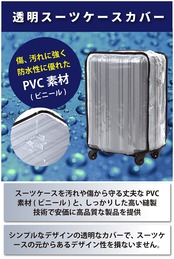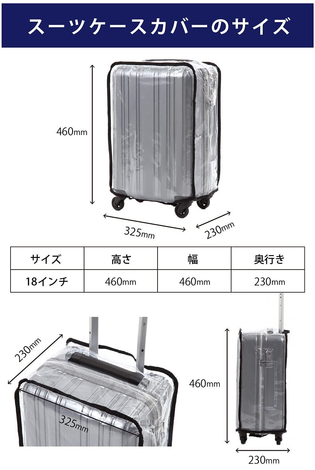 [KUGE] スーツケースカバー Sサイズ 透明 防水 PVC素材 ビニール製 頑丈 傷防止 汚れ防止 防塵 旅行 出張 飛行機 レインカバー ラゲッジカバー キャリーバッグ 保護 18インチサイズのスーツケース向け | LIFESELECT