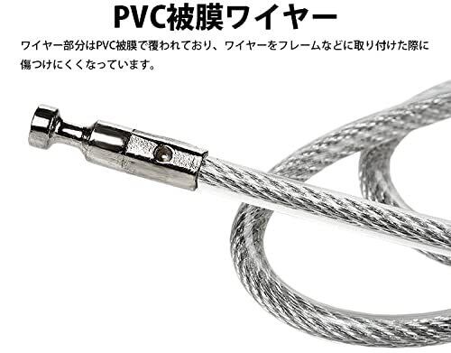 ワイヤー部分はPVC被膜で覆われており、ワイヤーをフレームなどに取り付けた際に傷つけにくくなっています。