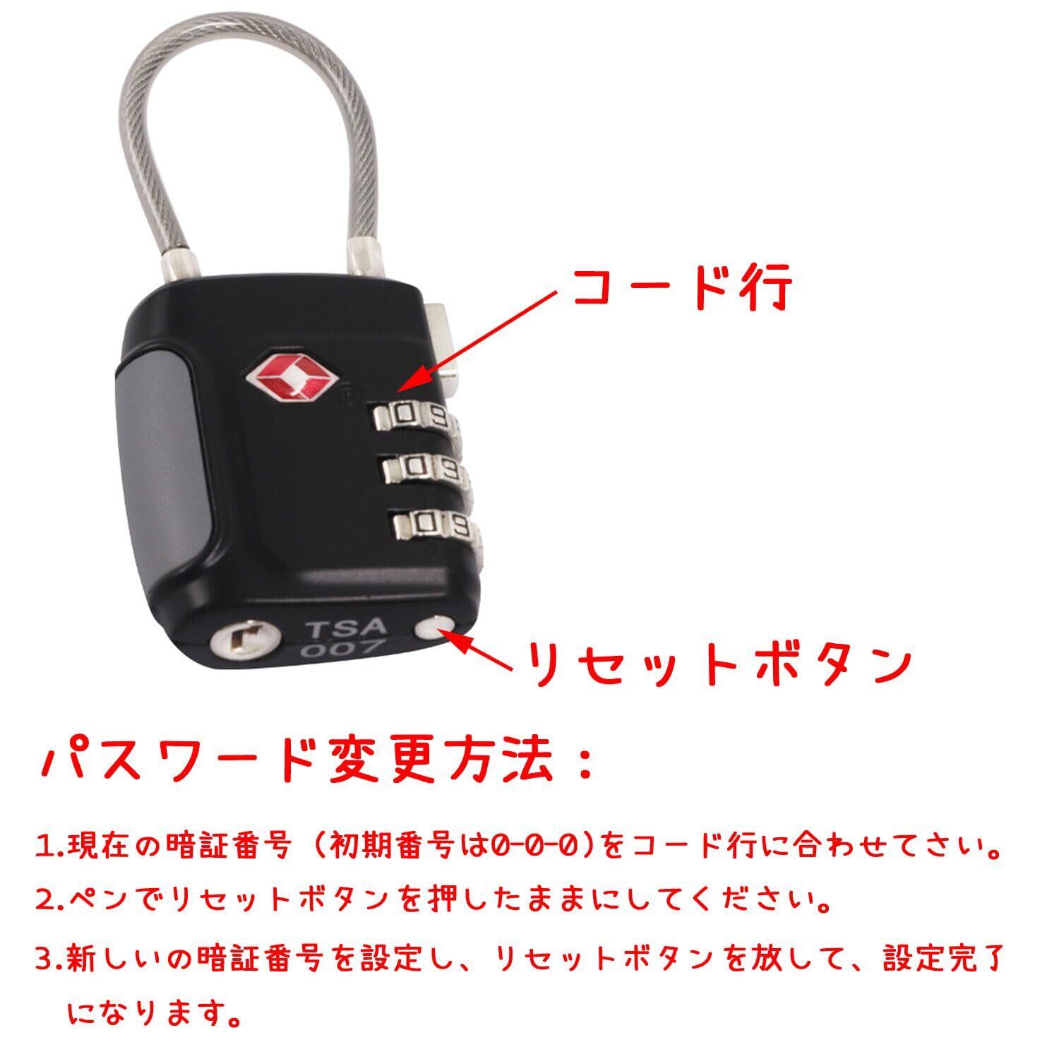 TSAロック 南京錠 海外旅行 出張用 3桁ダイヤル バッグ用ロック 防犯グッズ 家庭/事務室/学校
