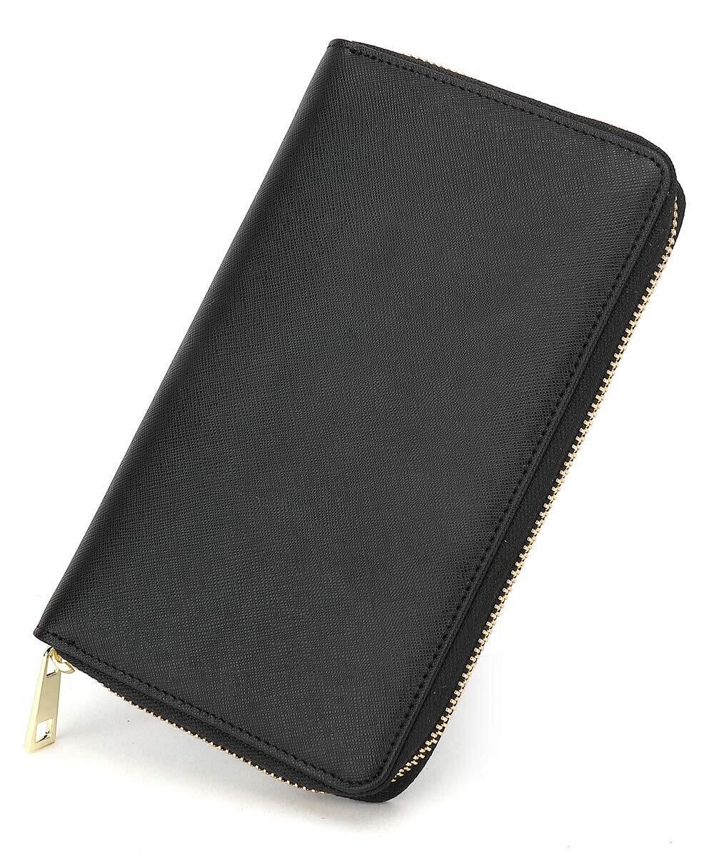 【在庫処分】[honey&blue] 通帳ケース 磁気防止 本革 YKK ファスナー 大容量 貴重品ケース 家計管理 (ブラック)