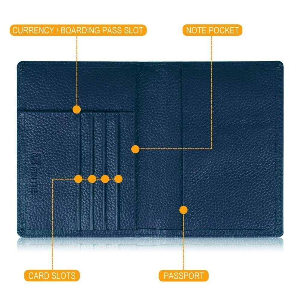 [FINTIE] パスポートケース ホルダー トラベルウォレット スキミング防止 安全な海外旅行用 PUレザー パスポートカバー 多機能収納ポケット 名刺 クレジットカード 航空券 エアチケット (ネイビー)