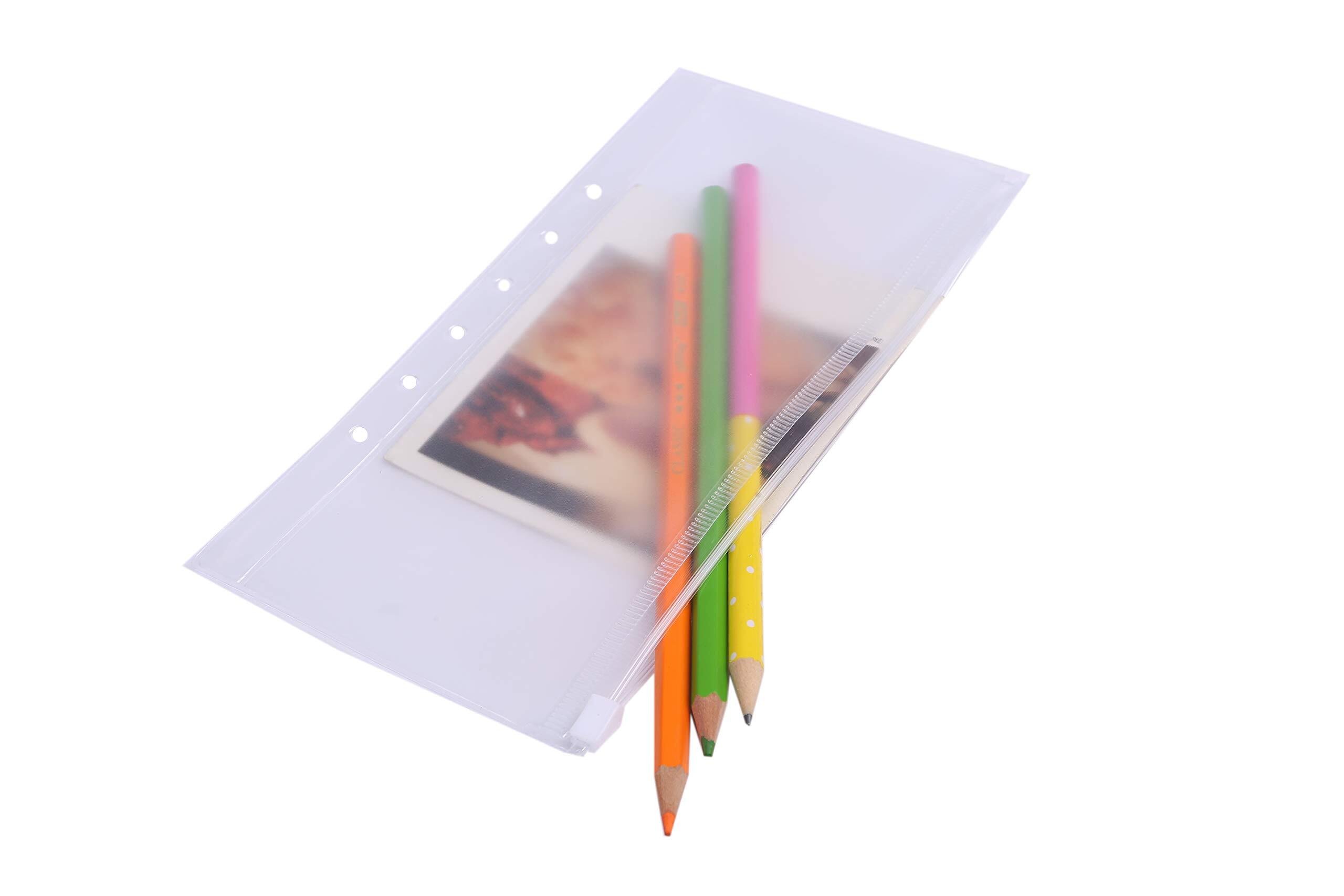 【通帳が入るサイズのPVCリフィルクリアポケット】無印良品パスポートケース、マルチーケースにリフィルの枚数を増やしたい人にぴったり!通帳も入るサイスが10枚入っています。表示を書けるシールは貼って剥がせるタイプなので安心です。