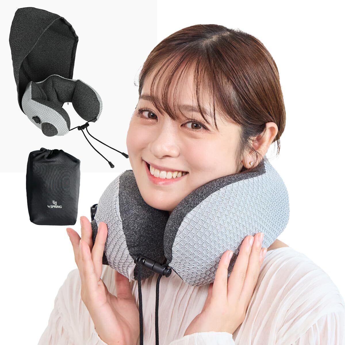 【公式】4 SPRING フード付き ネックピロー 【取得 エアポンプ式】トラベルピロー プライバシー確保 快眠環境 軽量 コンパクト