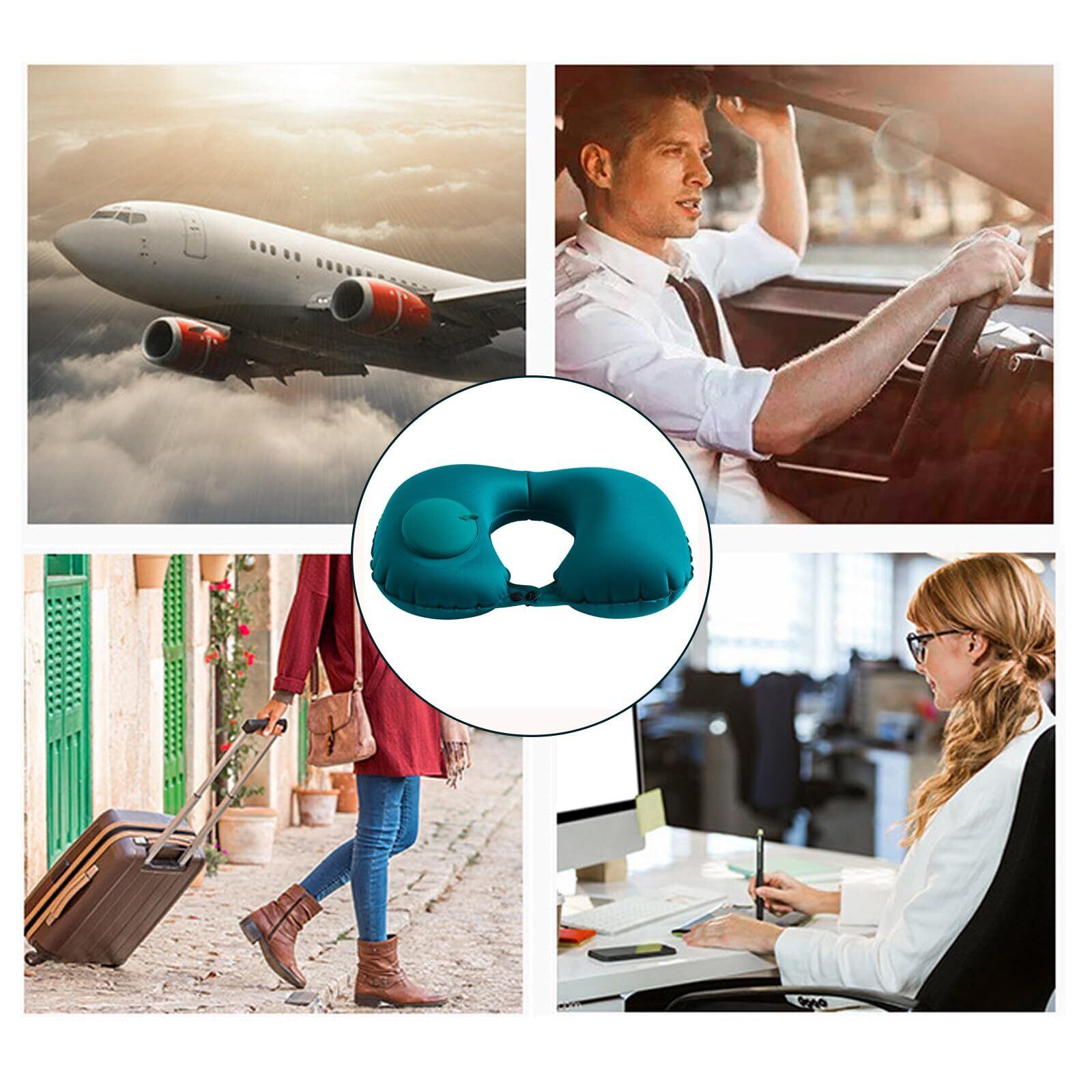 【特価商品】U型まくら ネックピロー 旅行枕 空気枕エアーピロー手動プレス式膨らませる 旅行用 飛行機 トラベル 空気枕 バス オフィス 携帯枕 収納袋、アイマスク、イヤープラグ付き (グリーン)