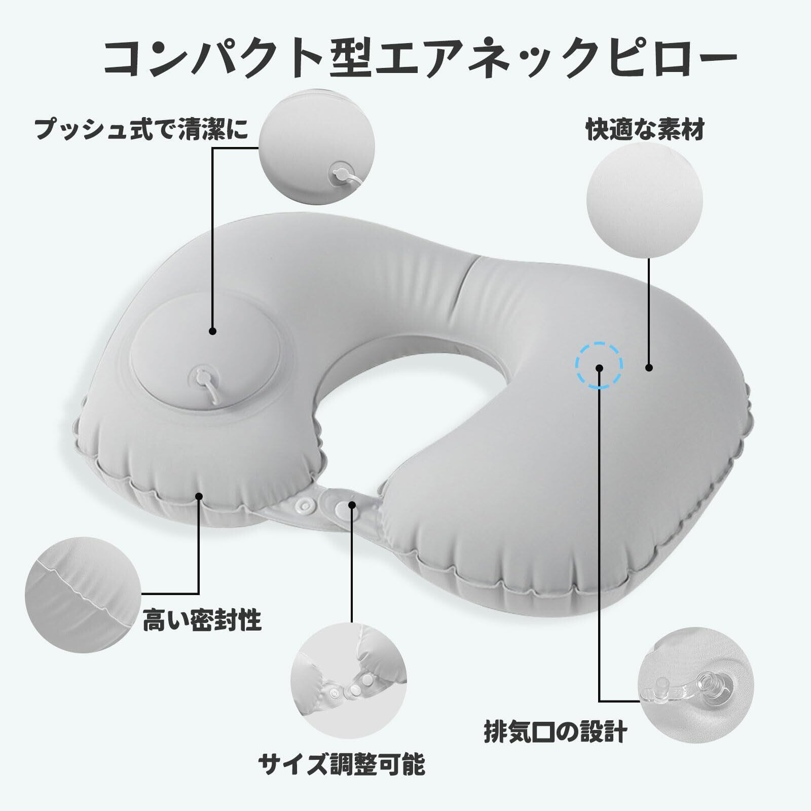 ネックピロー コンパクト 飛行機 枕 昼寝枕 オフィス、自宅で休む、海外旅行 便利グッズ エア枕 首枕