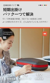 【圧縮機能】外部圧縮ジッパーで梱包後に内容物を圧縮する機能を提供し、9Lの荷物を5Lに圧縮でき、約50%のスペースを節約し(33cm H x 20cm W x 15cm-6cm Dコンムプレス)、荷物がかさばってしまうストレスから解放されます。頻繁に出張する方におすすめします