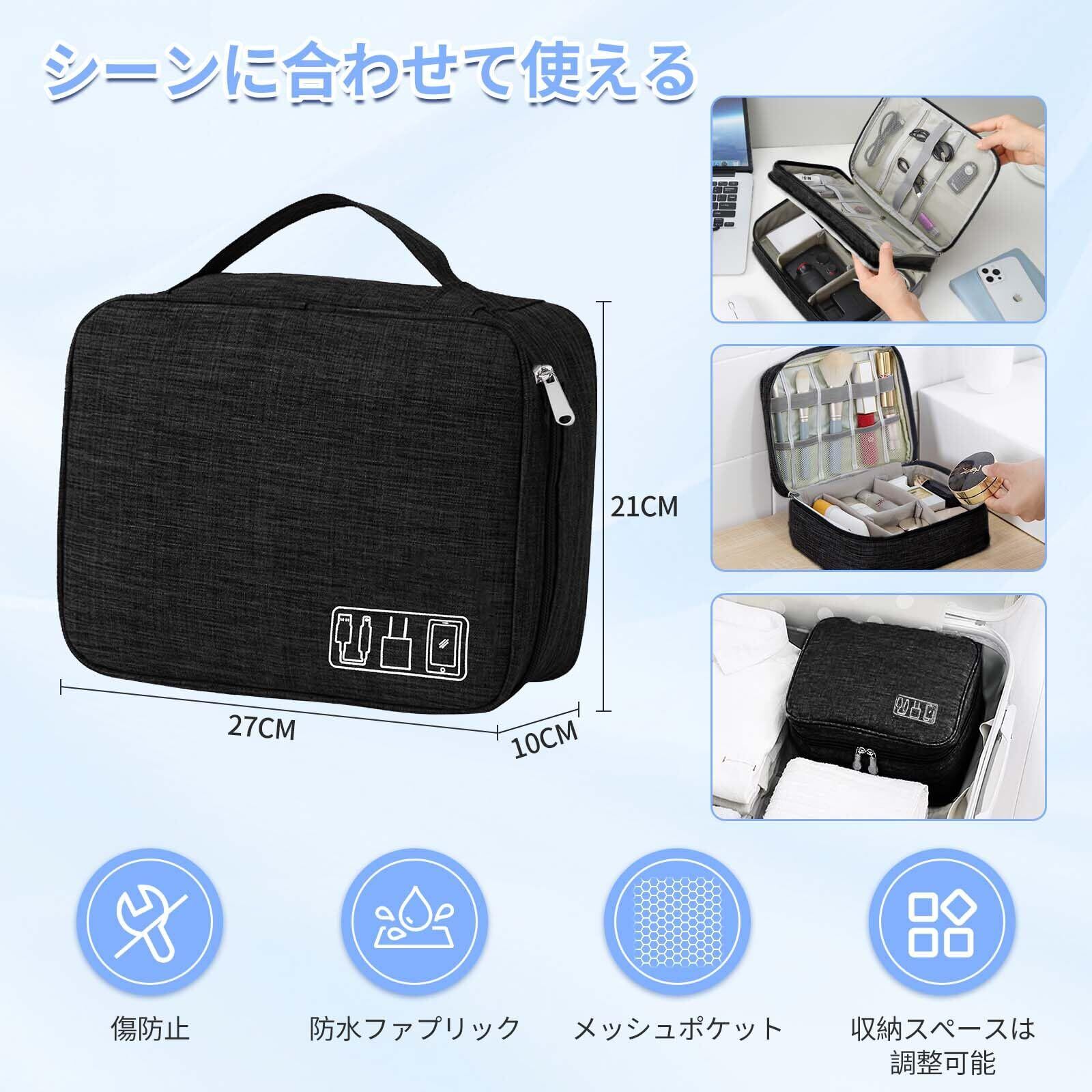 【2025年最新】トラベルポーチ ガジェットポーチ 撥水 仕切り 収納ポーチ 軽量ポータブル収納袋 モバイル収納ケース 小物入れ 整理 モバイルアクセサリー収納ケース 旅行 出張 収納 小物入れ (ブラック)