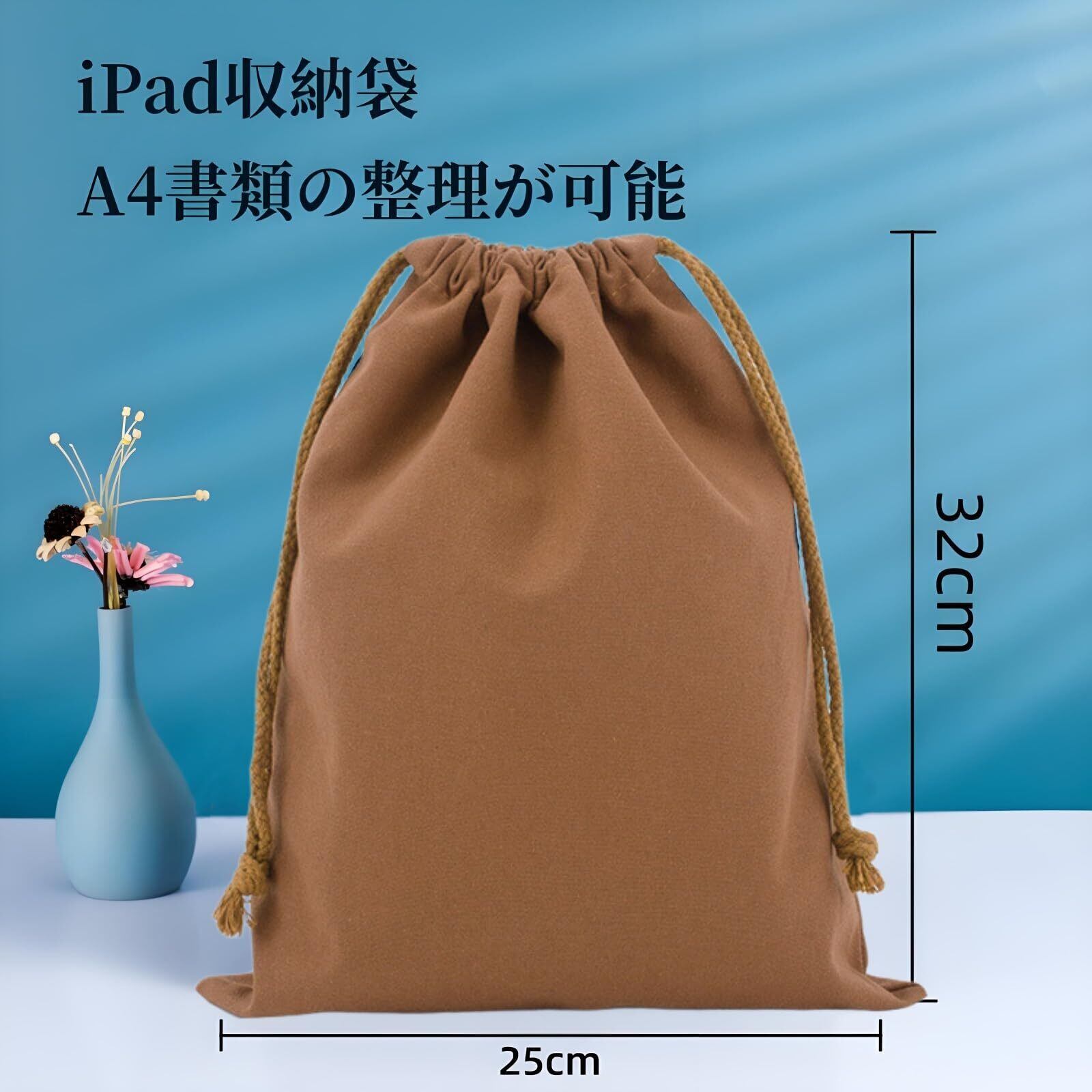 【特価セール】巾着袋 2枚セット 無地 棉布 6色 キャンバス製 お洒落 かわいい インナーバッグ 収納 旅行 着替え袋 巾着 収納ポーチ アクセサリーポーチ 小物入れ (ネイビーブルー, 25*32cm)
