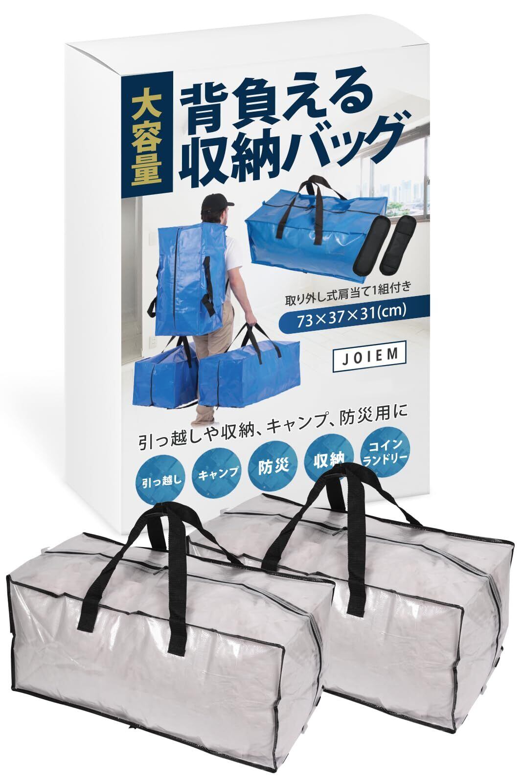 背負える収納袋 大きいバッグ 収納ケース 引越しバッグ 大型収納袋 持ち手付き 布団収納バッグ 大容量 洋服収納 防塵防水バッグ 特大 JOIEM (2, 透明)
