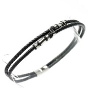 【特価商品】[シルバーワン] ge メタルビーズ 2連 レザー チョーカー 黒 スライドロック式[幅16mm 45cm 50cm]メンズ ステンレス 編み込み ブラック ネックレス