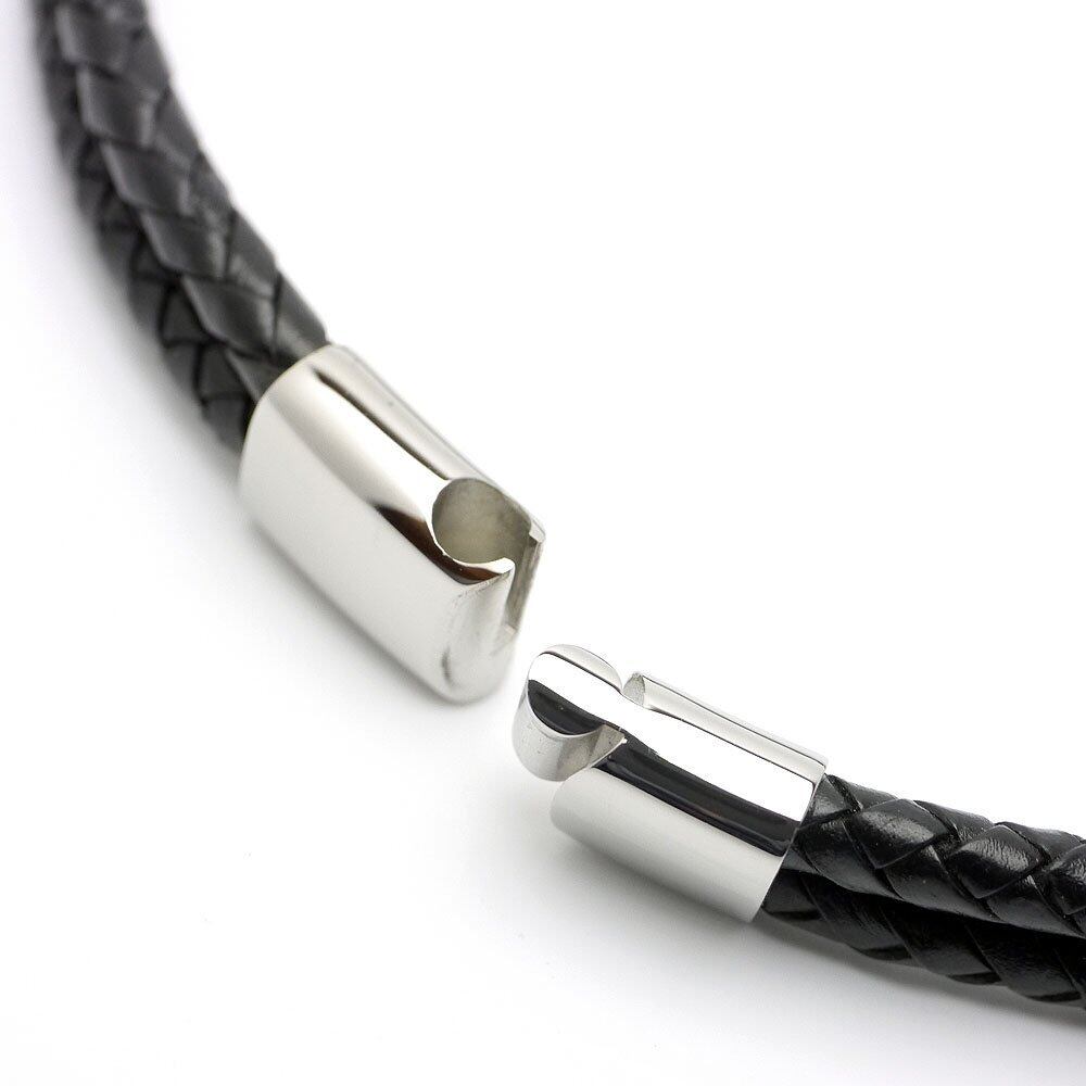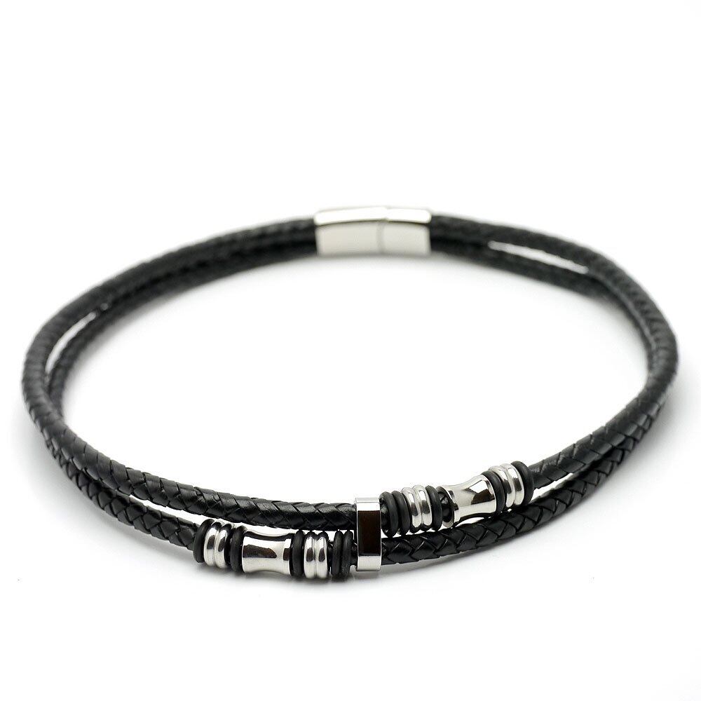 【特価商品】[シルバーワン] ge メタルビーズ 2連 レザー チョーカー 黒 スライドロック式[幅16mm 45cm 50cm]メンズ ステンレス 編み込み ブラック ネックレス | LIFESELECT