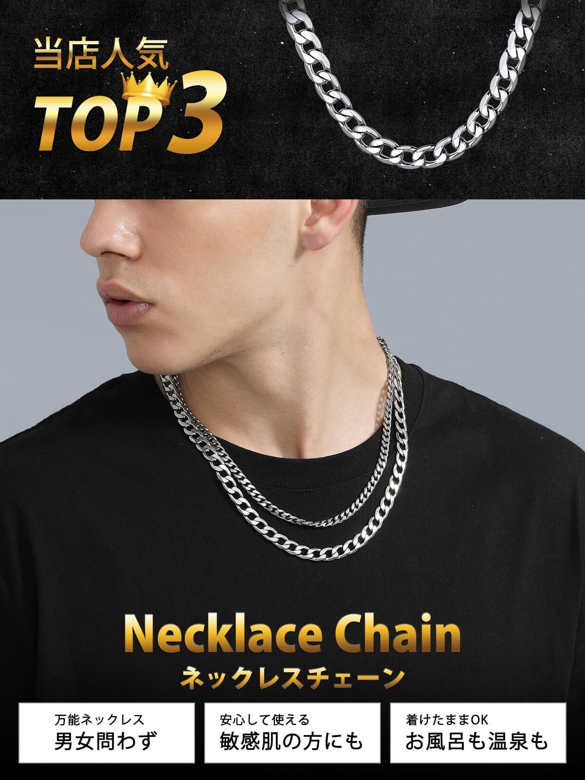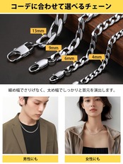 【色も!太さも!長さも選べる!】ネックレスチェーン幅4mm、6mm、9mm、13mm、チェーンの長さ45cm、50cm、55cm、60cm、65cm、70cm、75cm、定番で人気のシルバー、ゴールド、ブラックの3色、全84種類を揃えました!