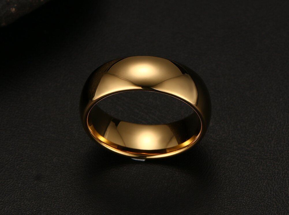 【Rockyu 指輪】 タングステン 指輪 メンズ ゴールド 金色 幅8mm リング レディース シンプル 男女兼用指輪 14号(指周り:55mmに合う) 超硬いタングステン比重:金とほぼ同じ、硬度:ダイヤモンドに匹敵、タングステンは耐久性、傷がつきにくいため、いつまでもその高度な輝きを失いません。金属アレルギーの原因である金属イオンが溶け出さないため金属アレルギーを引き起こしにくい、魅力的なタングステン指輪(男女兼用)です。