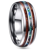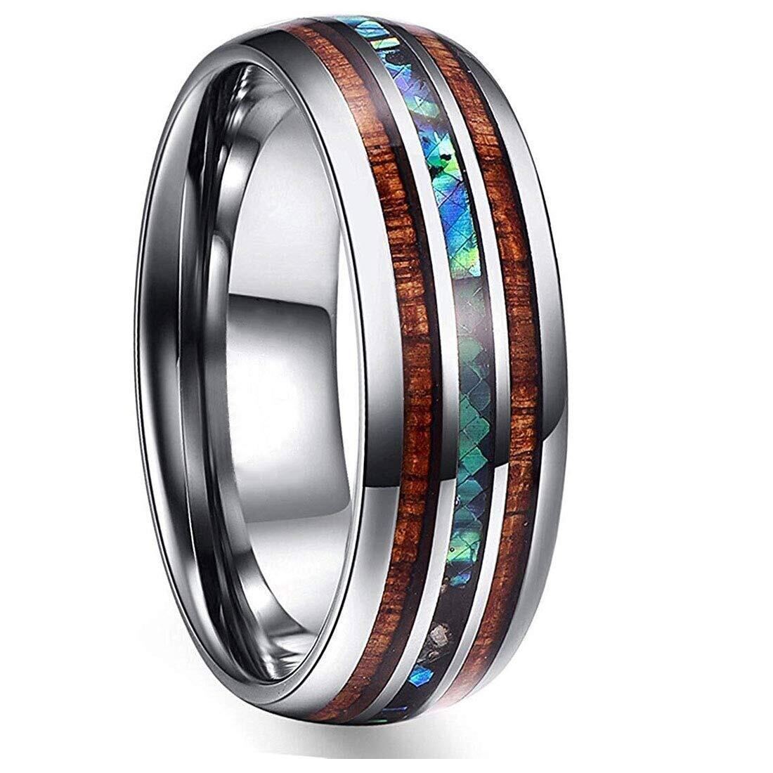[Rockyu] リング メンズ シルバー ウッド 貝殻指輪 チタン製 金属アレルギー対応 誕生日 記念日 パーティー プレゼント ファッション アクセサリー