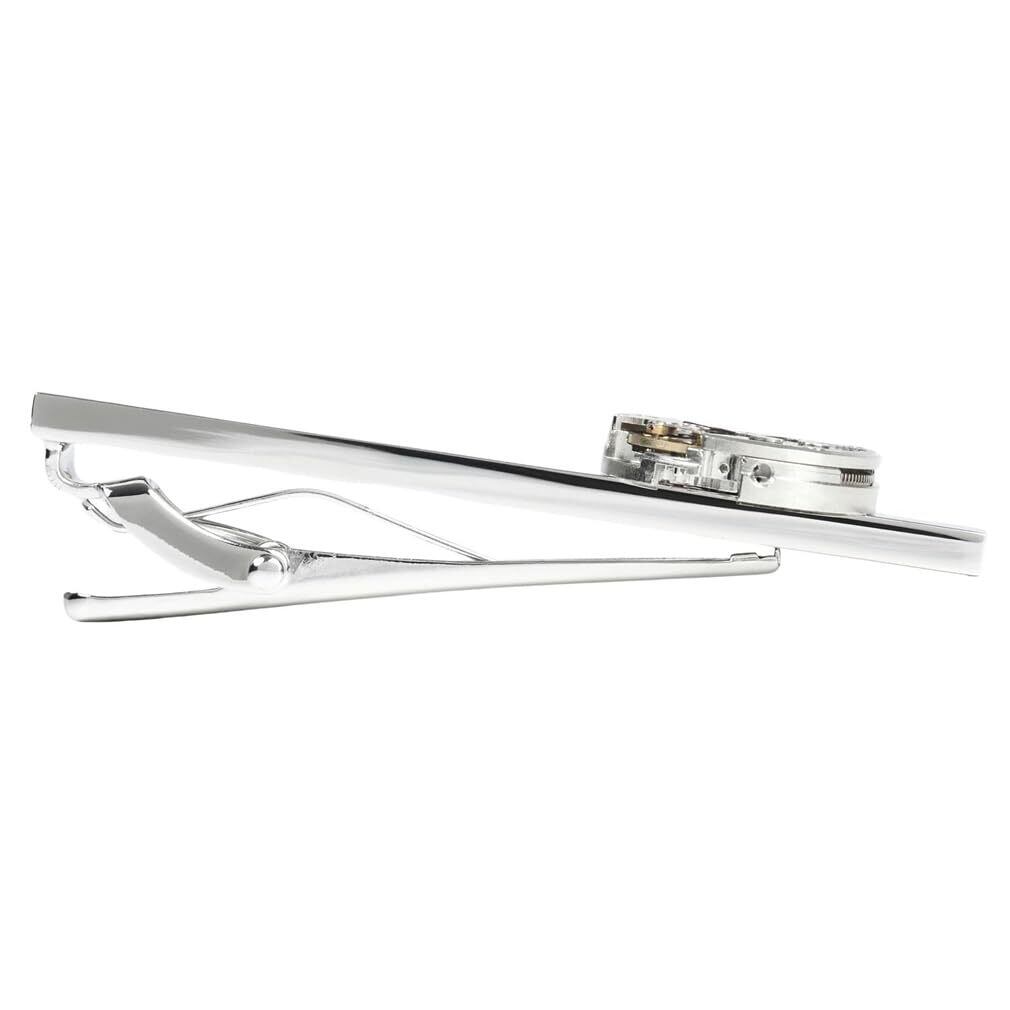 時計のムーブメントを使用したネクタイピン。男性らしいクールなデザインで、日常使いから装いに華やかさをプラスしたいときなど幅広くご使用いただけます。
