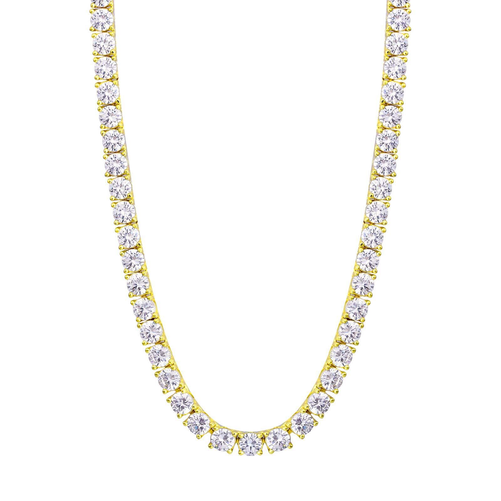 KRKC&CO テニスチェーン テニスネックレス 幅3/4/5mm CZダイヤ 14K金メッキ メンズ レディース チェーンネックレス ジルコニア ヒップホップ ジュエリー ブリンブリン B系 ストリート系 アクセサリー