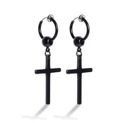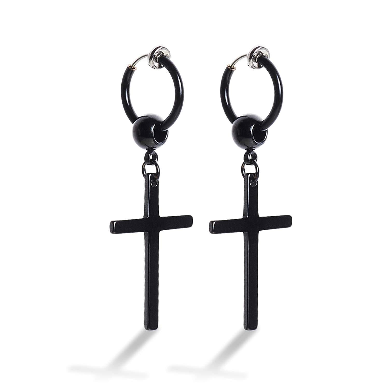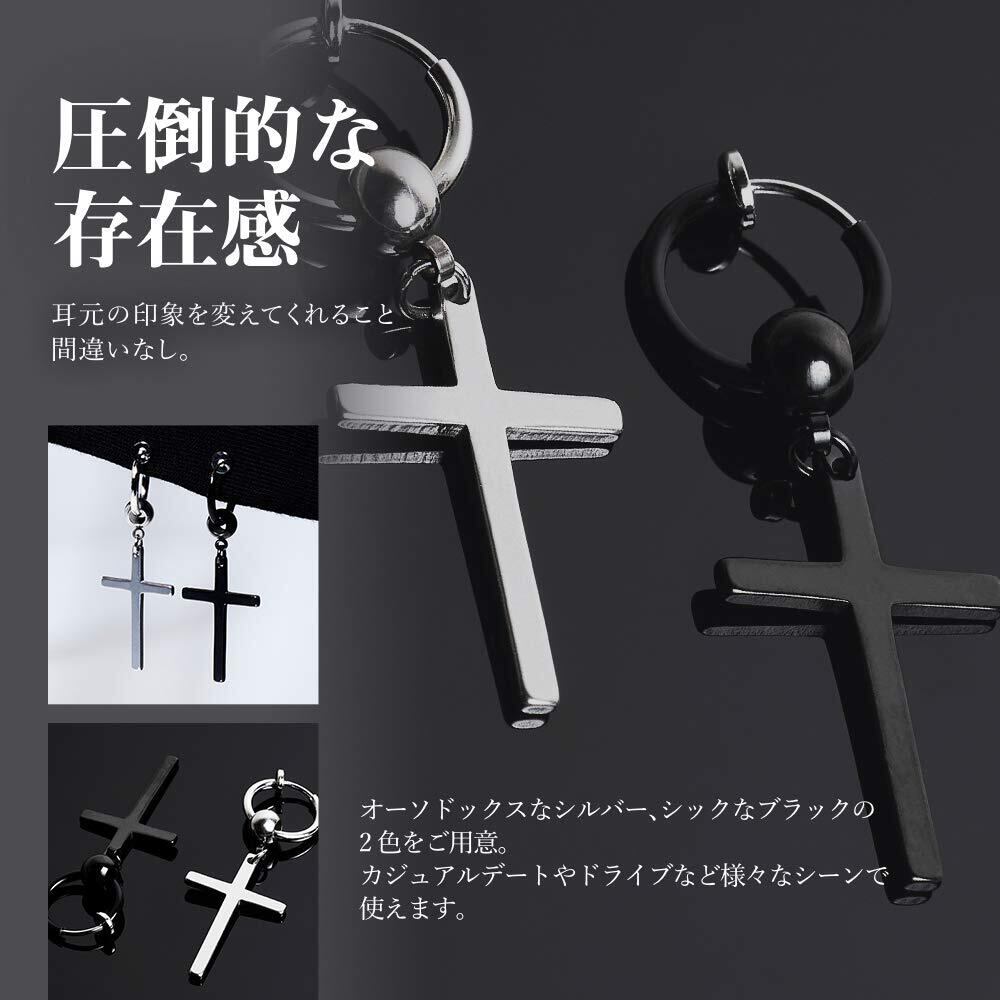 [Puente] ピアス穴不要 フェイクピアス 十字架 クロス イヤリング ノンホールピアス 両耳セット 十字架イヤリング ステンレス ブラック ボール 黒色 ピアス フープピアス リングピアス フープイヤリング リングイヤリング メンズ レディース
