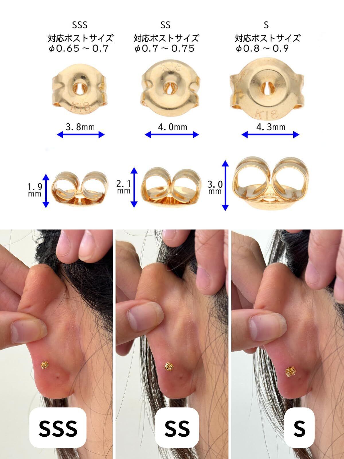 【 0.65~0.7mmポスト対応 】つけっぱなし用ピアスキャッチとしても人気。細いポストなど、繊細なピアスにもしっかりフィット。ロック式ピアスキャッチで、しっかりホールドします。