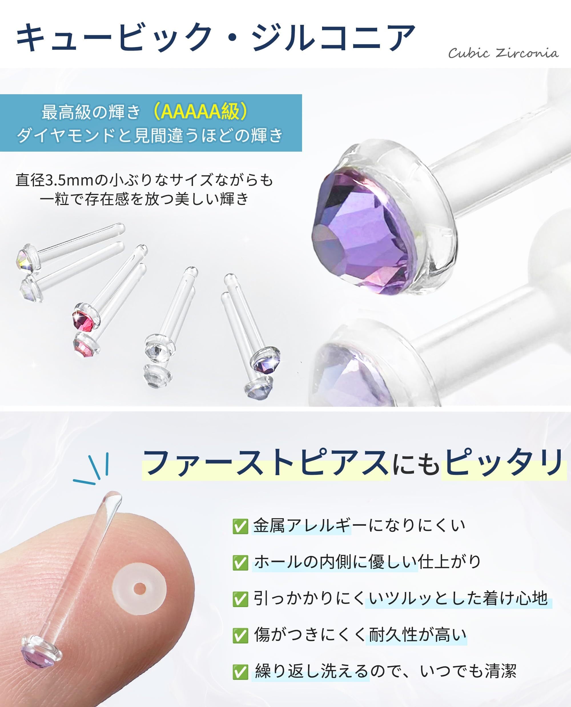 【つけっぱなしの新定番!!強化ガラス製ピアス】当店で大人気のガラスピアスにキュービックジルコニアが付いた新商品が入荷しました!! 内容:ガラス製ピアス4本 + シリコンキャッチ16本(リング型/花型) + 収納ケース1個 + オリジナルポーチ1個 ※軸長10mm/12mmの2種、ヘッド直径3.5mm、太さ(ゲージサイズ)は14G(1.6mm)/16G(1.2mm)/18G(1.0mm)/20G(0.8mm)の4サイズをご用意。耳たぶ、軟骨ピアスとして幅広くお使いいただけるスタンダードタイプです。