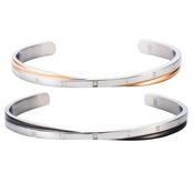 [ホワイトクローバー] ブレスレット ペアバングル ダイヤモンド サージカルステンレス316L アレルギーフリー アトラス ローマ数字 クロス ピンク&ブラック 4SBG005GO&4SBG005BK