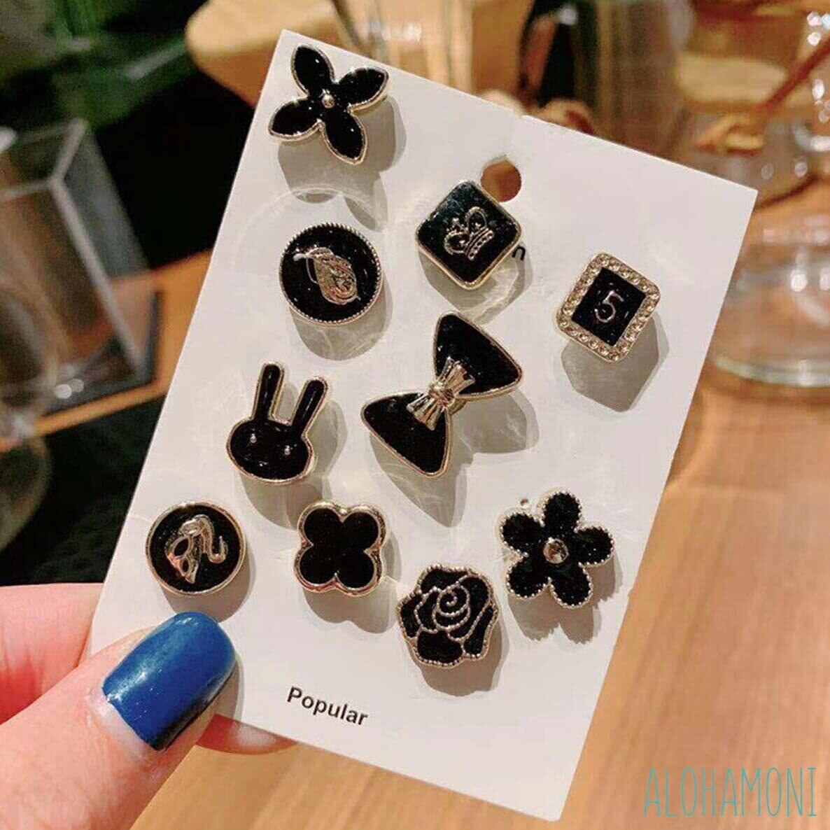 ALOHAMONI (アロハモニ) ブローチ タックピン 10個 セット ピンブローチ ピンバッジ ラペルピン ネクタイピン タイタック ハットピン ボタン 縫製不要 レディース メンズ キッズ ユニセックス (マグネットタイプ (ブラック))