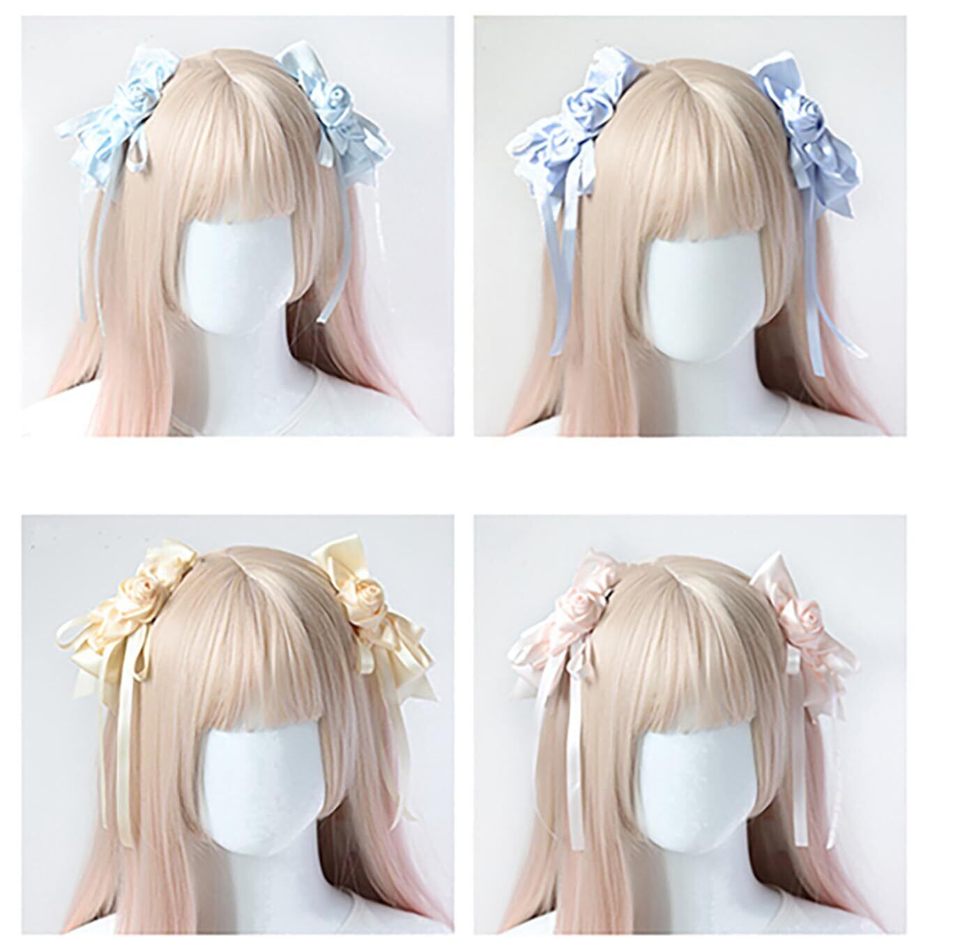 綺麗を薔薇がたっぷりと使い、長いリボンと二重蝶結びの組み合わせているので、ロリータドレスファッションには不可欠のヘッド飾りです。