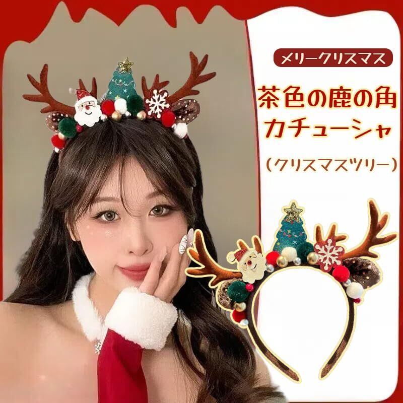 【在庫処分】[RidrificM8] 【2024年クリスマス飾り】クリスマス カチューシャ クリスマスツリー サンタクロース 手毬 小道具 クリスマス雰囲気満々 コスプレ レディース 子供 可愛い 小物 前髪留め 仮装 パーテ ィー グッズ 髪飾り 写真撮影用(茶色の鹿の角)
