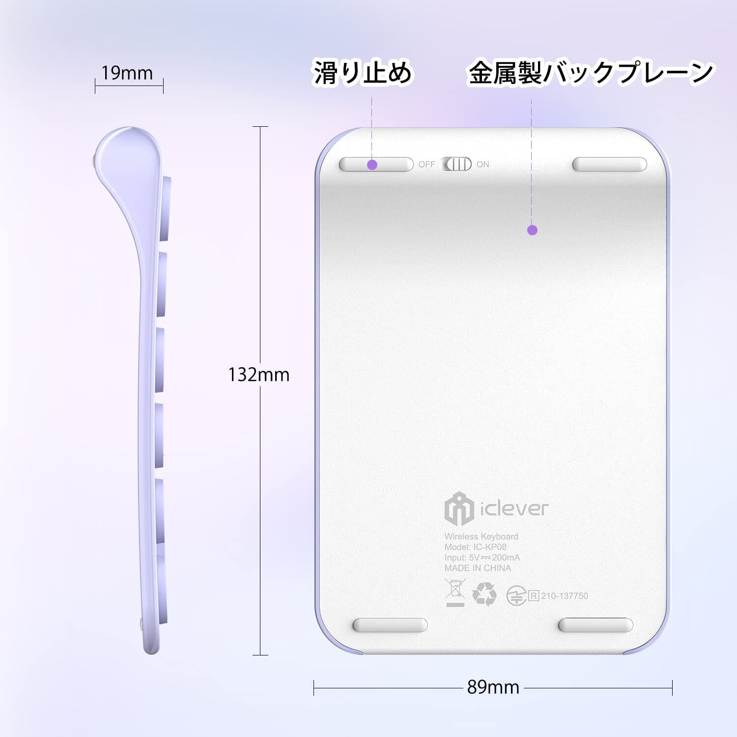 iClever テンキー Bluetooth Tabキー付き 耐久性 薄型 パンタグラフ ラップトップ デスクトップ PC ノートブック用 多機種対応 IC-KP08 (パープル)
