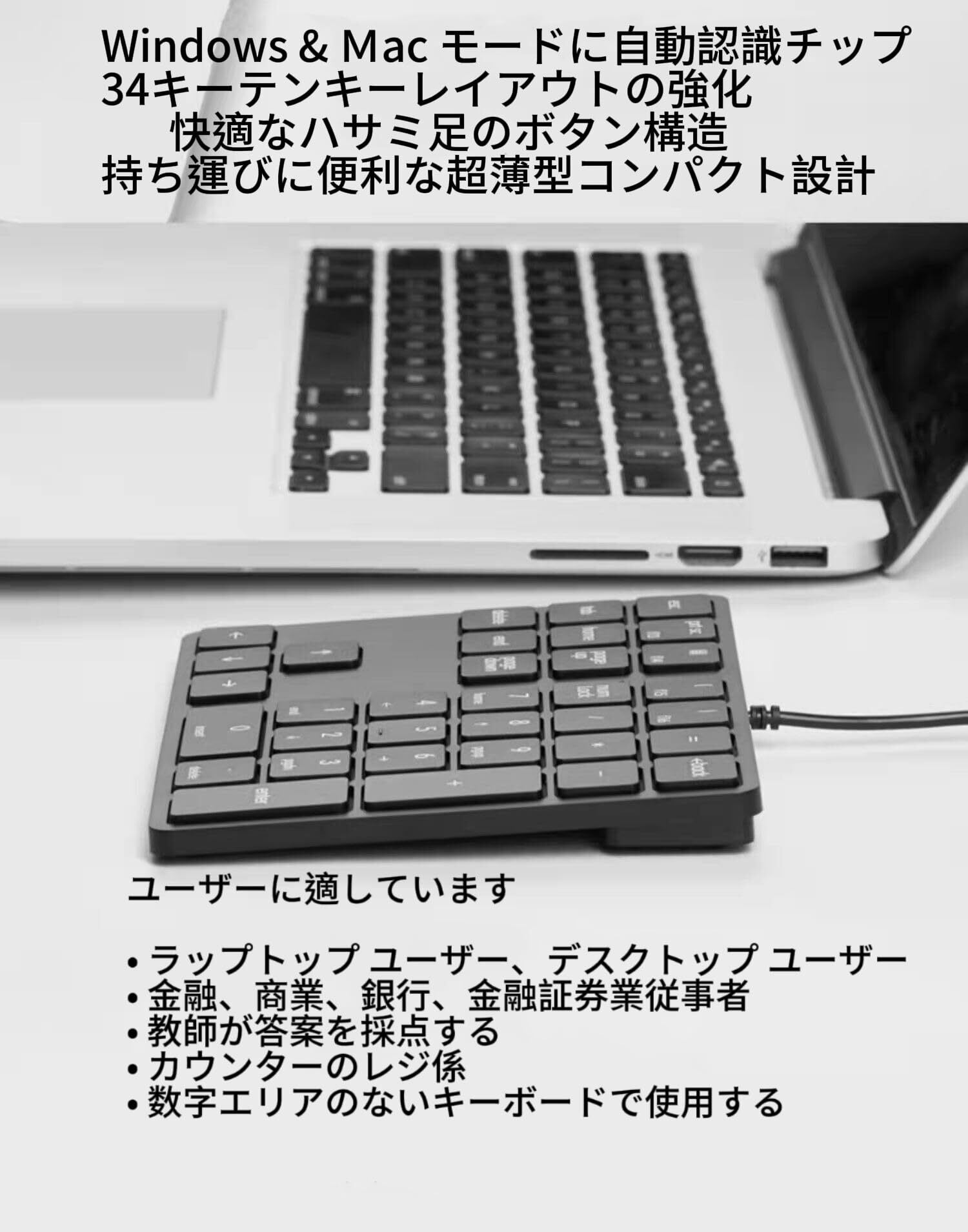 【マルチモデルマッチング】:このテンキーには、WindowsまたはMacオペレーティングシステムを自動的にマッチングする強力なシステム識別チップが搭載されています。34キーの有線テンキーは、ラップトップユーザーや銀行、金融証券、ビジネス関係者向けに適しており、87キー、82キー、68キー、および61キーのキーボードを備えたキーボードと組み合わせて使用できます。