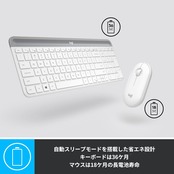 ロジクールよりスタイリッシュでミニマムなデザインが魅力の超薄型・静音ワイヤレスキーボードとマウスのセットが登場。 ロープロファイルの静音キーを採用したこのモデルは薄型でコンパクトなサイズながらもテンキーを搭載し高い生産性を実現しています。 薄型でスタイリッシュなデザインのマウスはクリック音を従来比90%削減した静音モデル。左右対称型のシルエットは左利きの方にもオススメです。 接続はUSB(※1)に対応。ロジクール独自のアドバンス2.4GHzワイヤレステクノロジーを採用し、最長10mの接続距離と混雑したワイヤレス環境でも途切れにくい安定したワイヤレス接続を可能にしています。 自動スリープモードを搭載。単四乾電池2本でキーボードは36ケ月、単三乾電池1本でマウスは18ケ月の長電池寿命を実現しています。メーカー2年間。 (※1) USBは本製品に同梱されています。 対応OS:[USB] Windows 8、10, 11 以降、Chrome OS、Surfaceで動作