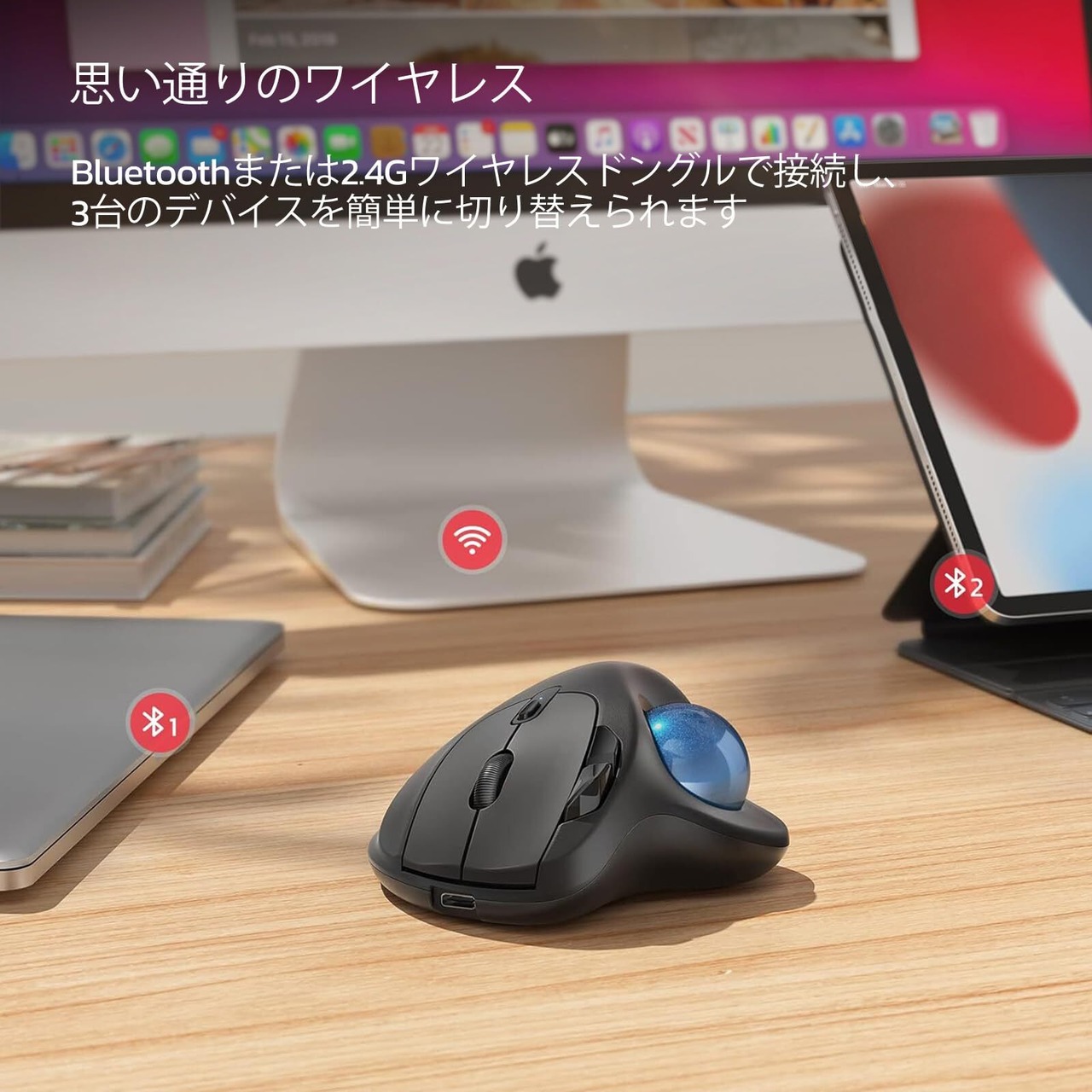 【精密トラッキング&4段階DPI調整で幅広い用途に対応】 高精度センサーと滑らかなトラックボールにより、ベッドやソファ、狭いスペースでも安定した操作が可能。用途に応じてDPIを4段階に調整でき、在宅ワークや繊細な作業にもおすすめのワイヤレストラックボールマウスです。