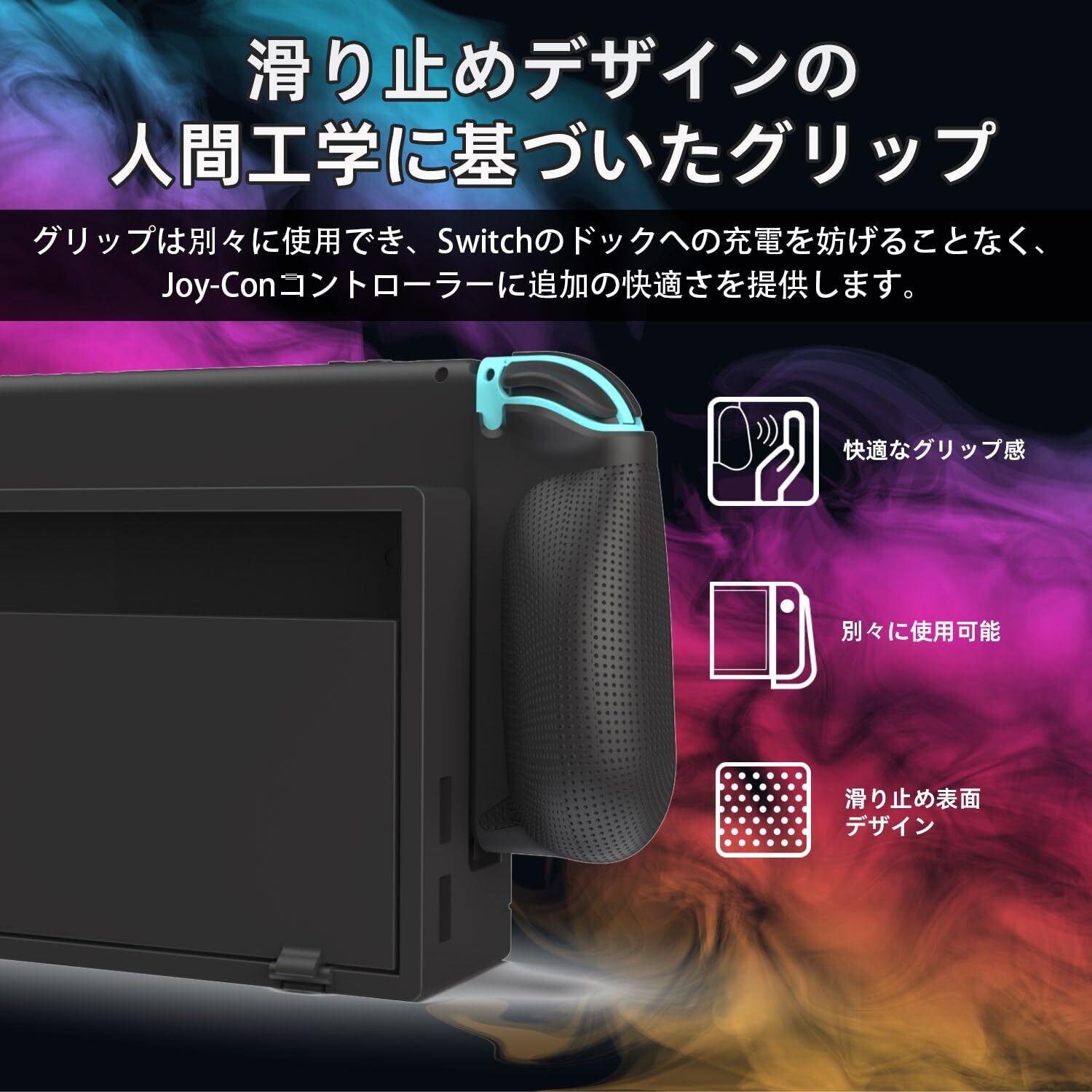 シームレスなユーザーエクスペリエンス:他のグリップとは異なり、私たちのデザインはSwitchをドックに充電する際に取り外す必要がなく、いつでもどこでも中断されることなくゲームを楽しむことができます。